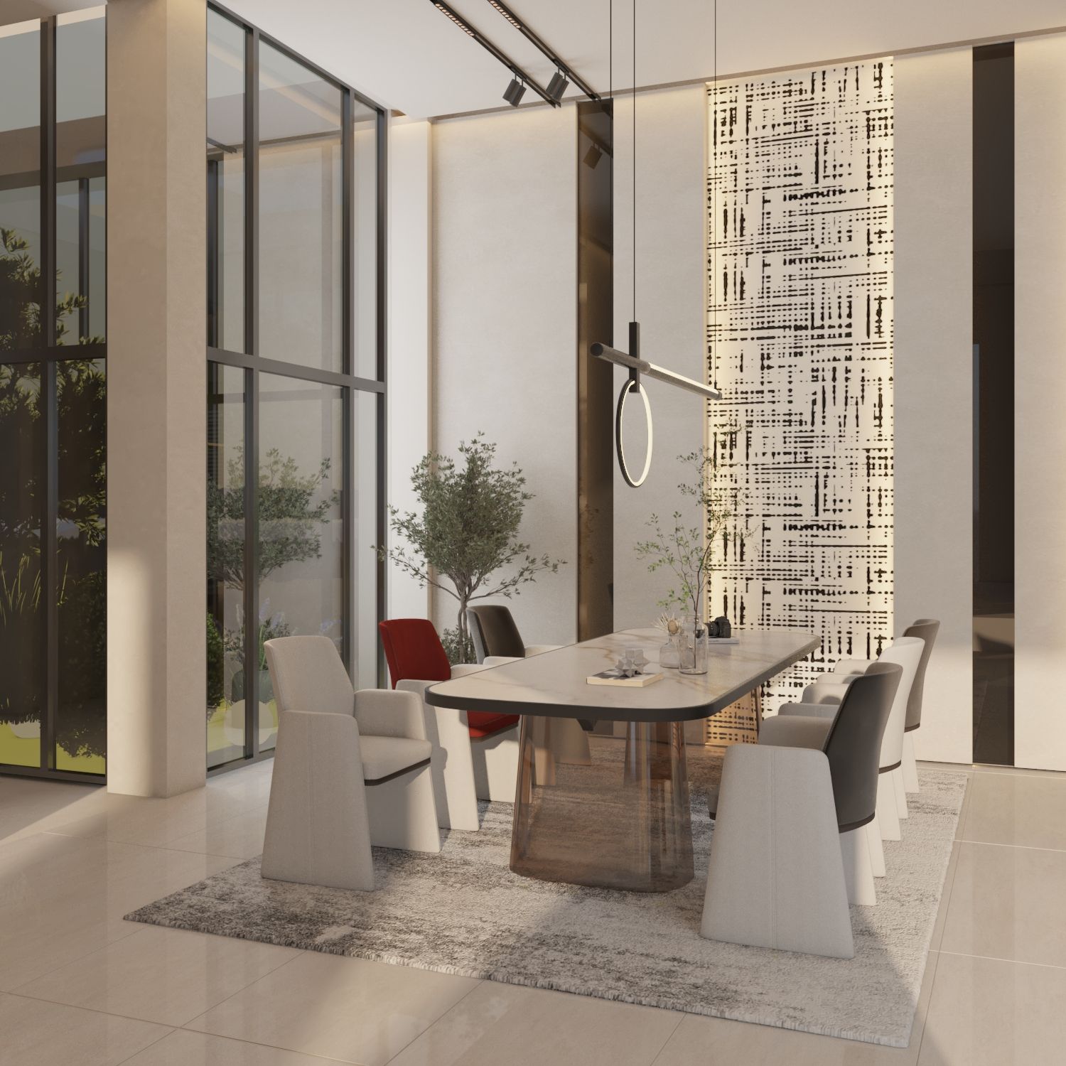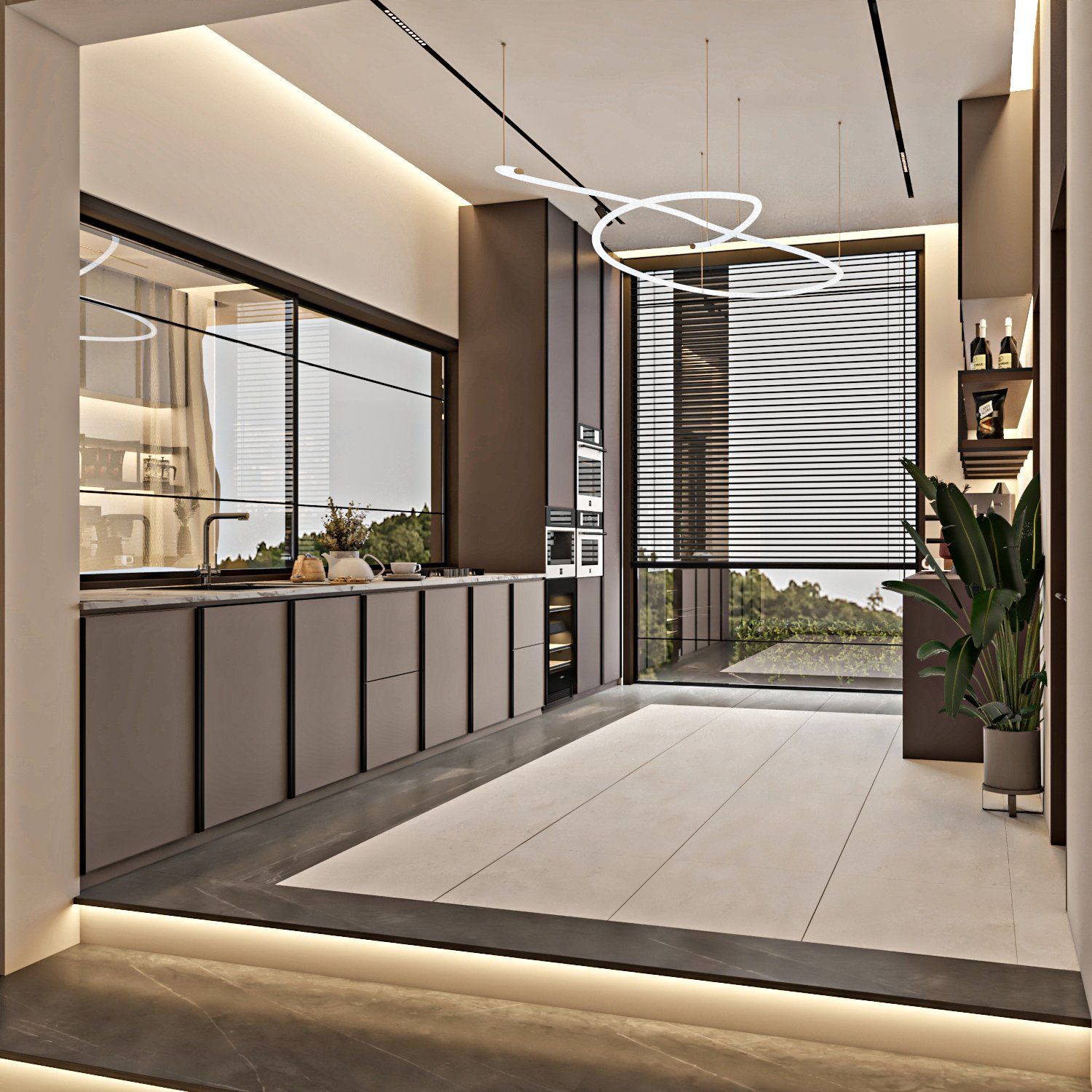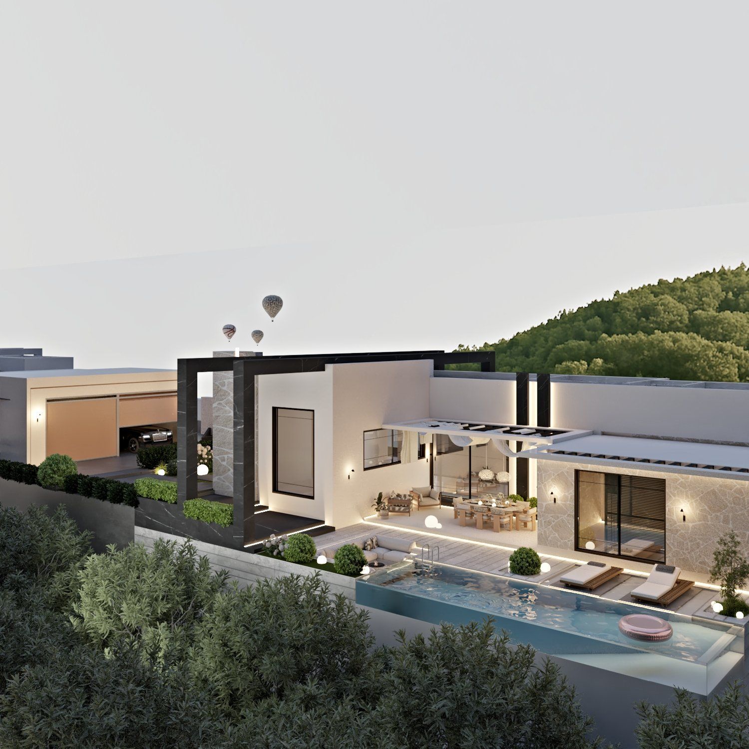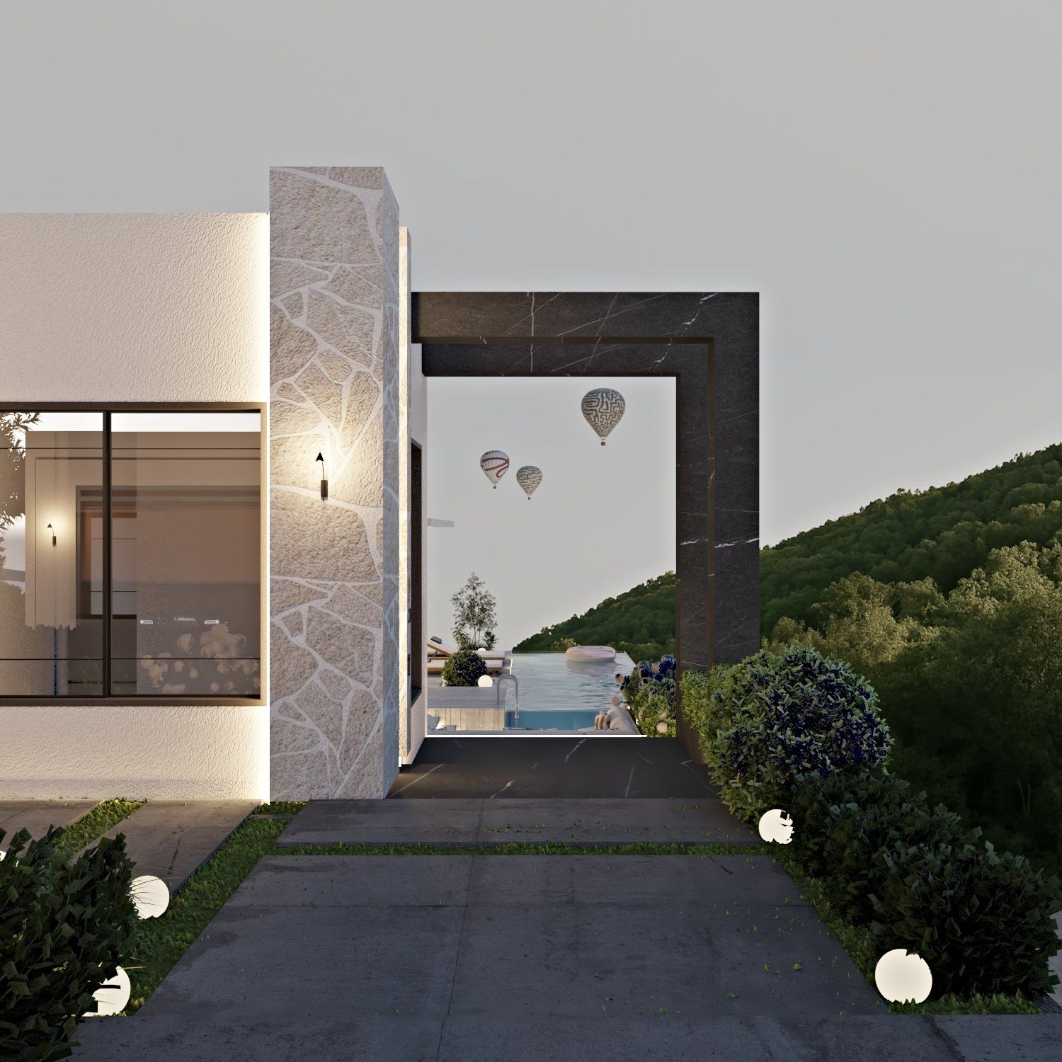 Situata nelle lussureggianti colline di Revigliasco vicino a Moncalieri, questa villa è stata progettata per celebrare sia l'eleganza moderna che la bellezza naturale del terreno inclinato. Il concetto abbraccia linee pulite, volumi aperti e una connessione senza soluzione di continuità tra vita interna ed esterna, creando una casa che si sente sia ispiratrice che profondamente radicata nel suo contesto. -Stile e Atmosfera Architettura contemporanea con tetti piani, ampie aperture in vetro e dettagli minimalisti. Abbiamo utilizzato pietra naturale, legno caldo e colori morbidi e leggeri per creare uno spazio che si percepisce come pacifico ed elegante. La luce soffusa mette in risalto le caratteristiche architettoniche e migliora l'atmosfera, specialmente al crepuscolo. - Topografia e Posizionamento della Piscina Il terreno inclinato è stato un elemento chiave: abbiamo posizionato la piscina a sfioro al bordo della vista in discesa, trasformando il naturale declivio in un'esperienza visiva drammatica. I bordi in vetro della piscina amplificano il panorama, dissolvendo i confini tra acqua e paesaggio.