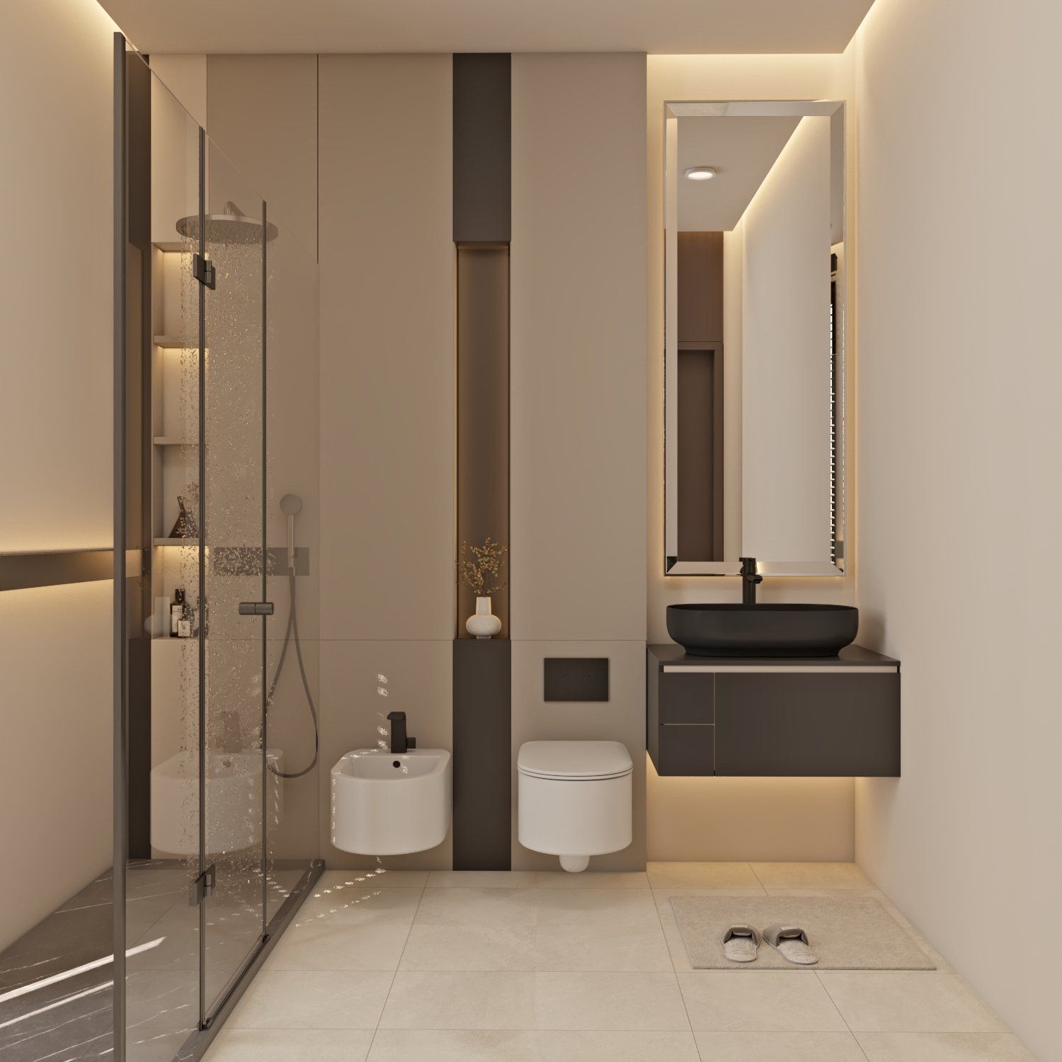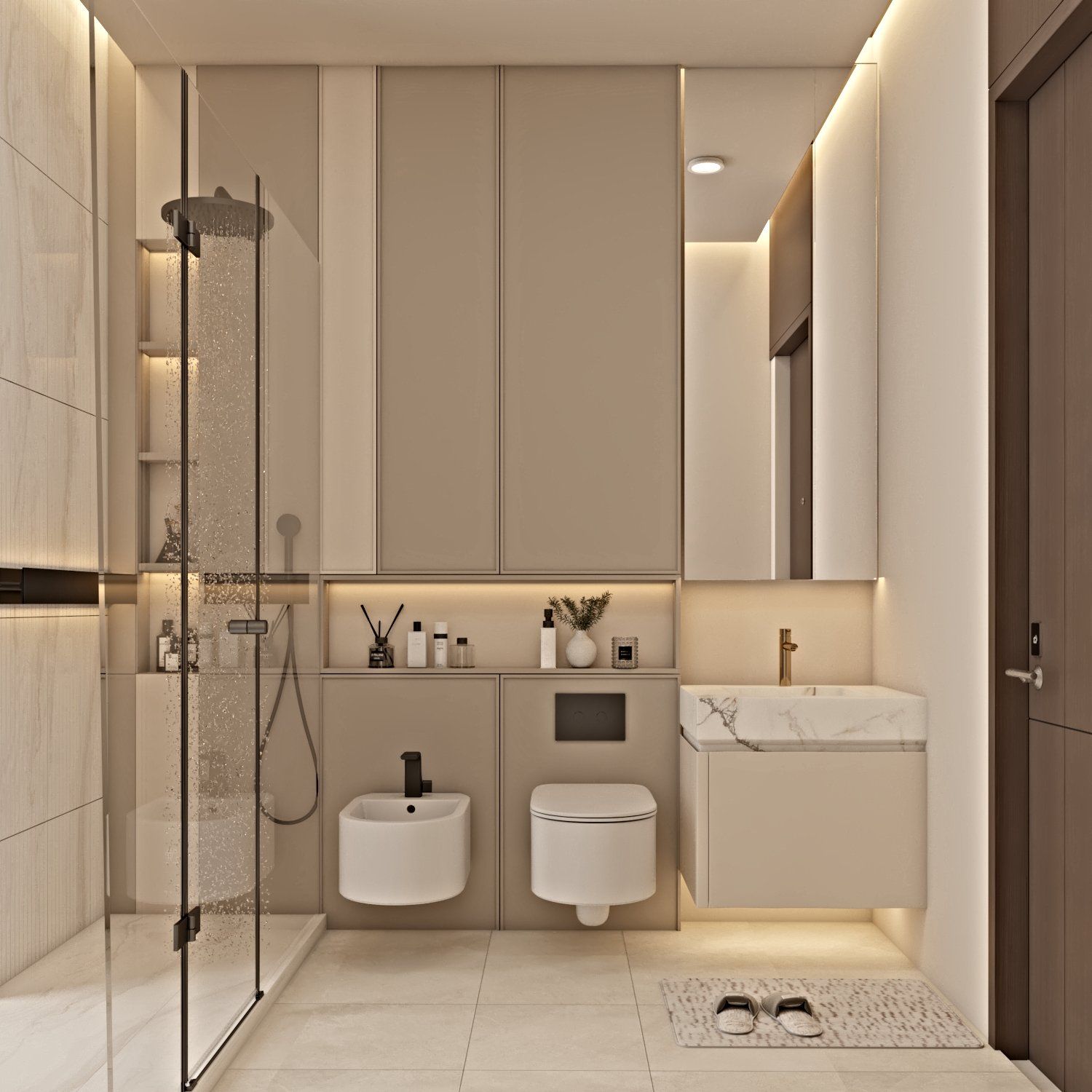 We used natural stone, warm wood, and soft, light colors to create a space that feels peaceful and elegant.