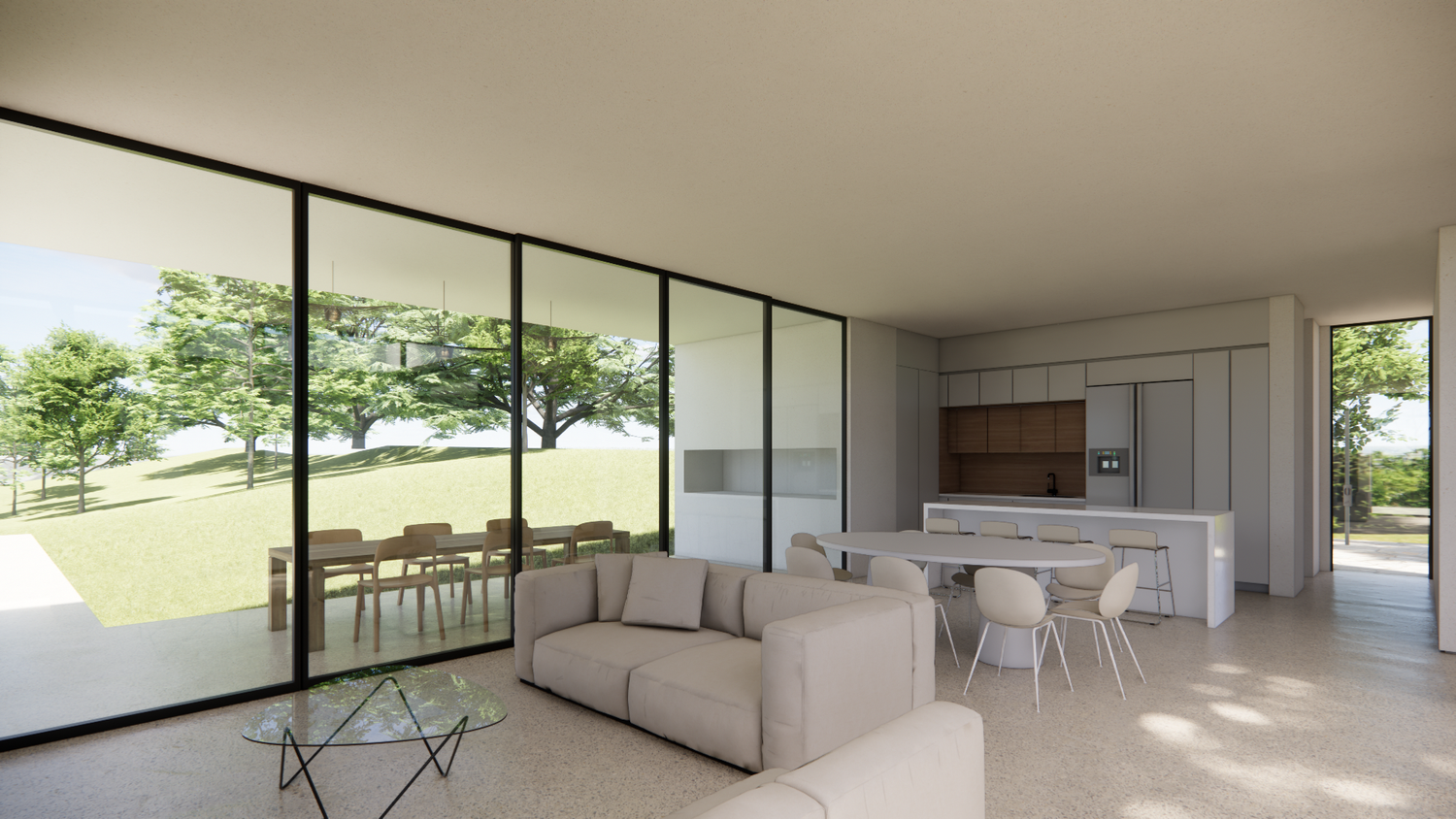 Le relazioni visive che si creano tra i diversi spazi danno una maggiore sensazione di ampiezza grazie alle grandi superfici vetrate.