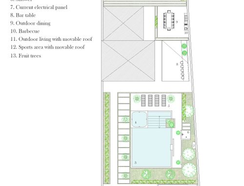 Hola a todos, tengo un pequeño jardĂn alrededor de la casa donde me gustarĂa tener una piscina al frente o detrás del edificio (mi idea es hacerla donde haya tierra), me gustarĂa tenerlo amueblado con tumbonas . Si la alberca está diseñada al frente, en la parte de atrás me gustarĂa tener un área de bbq y flora para el jardĂn. Me gustarĂa crear iluminaciĂłn led alrededor del jardĂn y, por supuesto, de la piscina para que el exterior sea más elegante. Alrededor de la glorieta del techo del automĂłvil, me gustarĂa crear una especie de caja que pueda "cerrarla". Me gustarĂa reemplazar la malla de la cerca con una que pueda brindar más privacidad. A nivel de flora estoy abierto a nuevas propuestas (Mediterráneo), las plantas actuales se pueden mover.