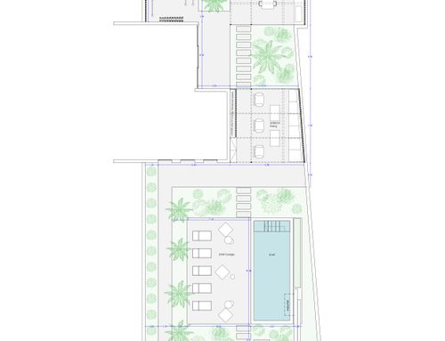 Nel retro della casa dove è presente la larghezza di 14m, la lunghezza di 39,3m si prolunga di altri 12m arrivando ad un totale di circa 51m.