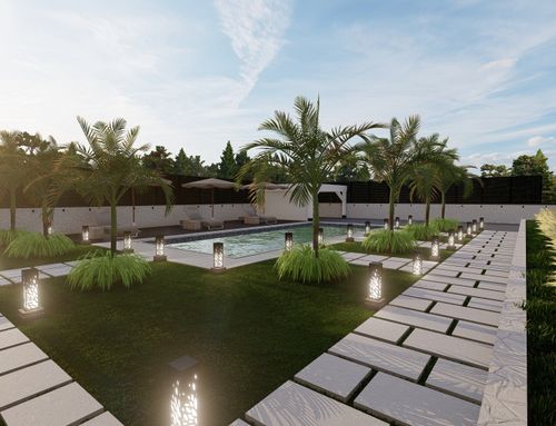 Salve a tutti, ho un giardino piccolo intorno alla casa dove vorrei disporre una piscina davanti o dietro l'immobile (la mia idea è farla fronte casa ma non eliminerei l'idea di farla nel retro della casa), mi piacerebbe averla arredata con dei lettini prendisole e delle piante intorno. Nel caso la piscina venisse progettata davanti, nel retro vorrei avere una zona BBQ, magari con veranda e anche un forno e flora per il giardino. Possibilità anche di creare nuovi gazebo/veranda. Mi piacerebbe creare un'illuminazione a led intorno al giardino e naturalmente alla piscina per rendere l'esterno più elegante, considerare già l'illuminazione esistente (vedi foto di sera) Attorno al gazebo di copertura per le auto vorrei creare una sorta di boxe che possa "chiuderlo" o meglio chiudere lateralmente il boxe auto con una soluzione elegante. Vorrei sostituire la rete della recinzione con una che possa fornire maggior privacy, magari trovare una soluzione diversa alla recinzione Brianza esistente. A livello di flora sono aperto a nuove proposte (mediterranee), le piante attuali possono essere spostate.