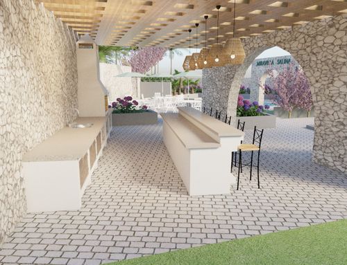 HOLA A TODOS, TENGO UN BB COMPUESTO POR 4 HABITACIONES Y 10 CAMAS DONDE TENDRÍA QUE REORGANIZAR EL EXTERIOR: NOS GUSTARÍA CREAR UNA ENTRADA CON PORTON AUTOMÁTICO (NO CON REJAS SINO CON DOS PUERTAS BLANCAS) Y UN GARAJE/CUBIERTA INTENTO NO AMPLIAR DEMASIADO TERRENO. EN LA ISLA HAY LIMITACIONES PAISAJEAS DONDE IMPONEN ALGUNAS NORMAS POR LO QUE EL GARAJE DEBE ESTAR ENTERRADO A NIVEL DE CALLE CON UNA ALTURA QUE NO SUPERE EL SUELO ENTRE LA ENTRADA Y EL GARAJE DEBE ESTAR 4/5M EN LÍNEA DE LA JAULA ENI. TAMBIÉN SE CREÓ UNA ENTRADA PEATONAL DESPUÉS DEL PORTON DE ENTRADA AUTOMÁTICO PARA LLEGAR AL JARDÍN BB DONDE OFRECEMOS UN DOSEL PARA EL DESAYUNO EQUIPADO CON UNA MOSTRADOR DE BAR DE RESTAURANTE, UNA PISCINA DE 21 MQ CON SOLARIUM Y DUCHAS.