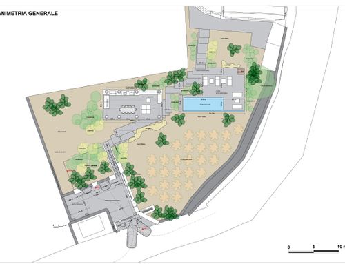 HELLO EVERYONE, I HAVE A BB MADE UP OF 4 ROOMS AND 10 BEDS WHERE I WOULD HAVE TO REORGANIZE THE EXTERIOR: WE WOULD LIKE TO CREATE AN ENTRANCE WITH AUTOMATIC GATE (NOT WITH GRATES BUT WITH TWO WHITE DOORS) AND A GARAGE/COVERING TRYING NOT TO EXPAND TOO MUCH. GROUND. ON THE ISLAND THERE ARE LANDSCAPE CONSTRAINTS WHERE THEY IMPOSE SOME RULES SO THE GARAGE MUST BE BURIED AT STREET LEVEL WITH A HEIGHT NOT EXCEEDING THE GROUND BETWEEN THE ENTRANCE AND THE GARAGE THERE MUST BE 4/5M IN LINE OF THE ENI CAGE. IT MUST BE CREATED ALSO A PEDESTRIAN ENTRANCE AFTER THE AUTOMATIC ENTRANCE GATE TO GET TO THE BB GARDEN WHERE WE PROVIDE A CANOPY FOR BREAKFAST EQUIPPED WITH A RESTAURANT BAR COUNTER, A 21MQ SWIMMING POOL WITH SOLARIUM AND SHOWERS.