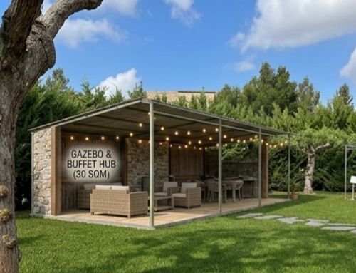 abbiamo bisogno di completare questo spazio esterno al momento con prato verde alberi , e un gazebo di 30 mq . il tutto x circa 200 mq. garden adiacente alla zona piscina che utilizziamo per banchetti , buffet