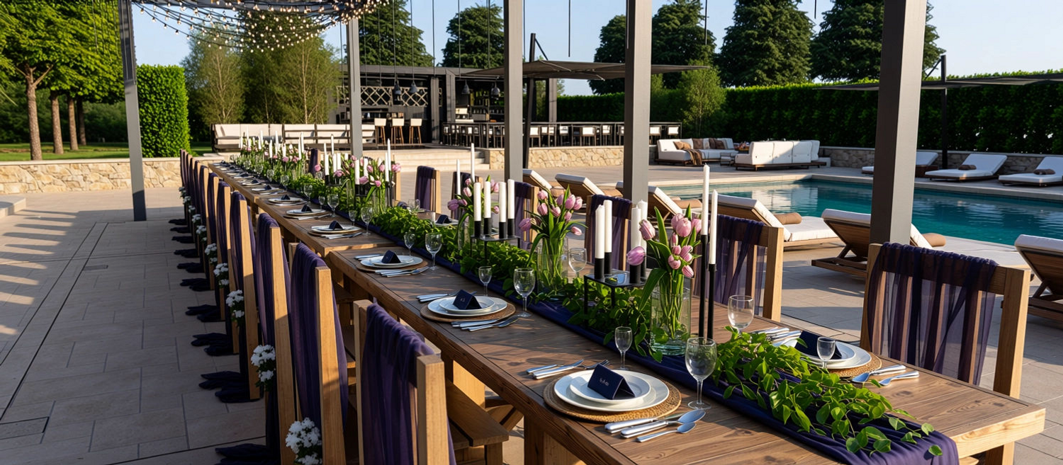 Nelle nostre visualizzazioni, abbiamo inserito anche un'ipotesi di allestimento per una cerimonia nuziale, inserito sotto uno dei pergolati.