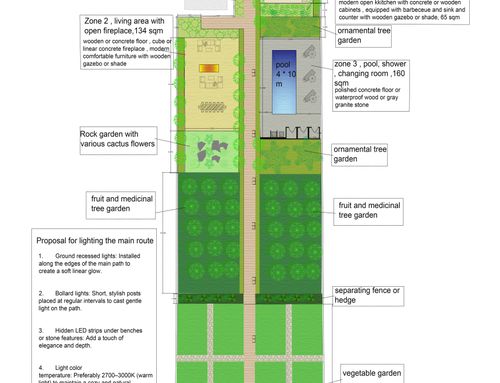 The garden to be designed has a surface area of approximately 3,000 m², with a long and narrow layout — 24 meters wide and 125 meters long.