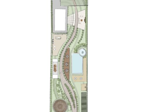 Una piscina con zona de solárium, preferiblemente distribuida en el eje longitudinal del jardín.