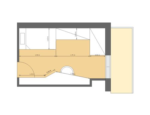 Une chambre pour une fille de 9 ans qui l'accompagnera dans sa croissance. Style moderne. Principalement blanc avec des détails colorés si souhaité. Un lit une place et demie ou un lit gigogne pour inviter les amies. Des armoires spacieuses, mais aussi beaucoup d'espace pour les livres et de l'espace libre pour jouer. Un enfoncement avec des projecteurs a déjà été aménagé du côté du radiateur.