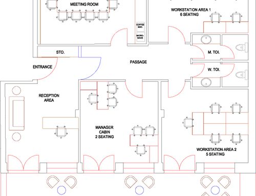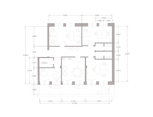 - Escritorios (13 estaciones de trabajo) de los cuales 5-6 en una habitaciĂłn individual, 2 salas con 3 estaciones de trabajo y una con 2