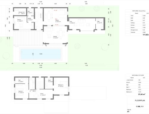 Debajo de la veranda orientada al suroeste (hoy sĂłlo una pĂ©rgola), nos gustarĂa hacer una piscina, enterrada en una nueva terraza a crear: actualmente tiene una pendiente muy pronunciada. La piscina debe integrarse en el entorno como todo lo demás del proyecto, que debe utilizar materiales lo más naturales posible, que puedan aislar y hacer que la casa sea lo más autosuficiente posible. Se puede acceder a la piscina mediante una escalera o un tobogán lateral. La pĂ©rgola de momento, al igual que el resto de la casa, se apoya en la roca, que no sabemos que es pero como no es de granito, quizás se pueda excavar, por lo que si es posible nos gustarĂa hacer una bodega bajo la veranda.