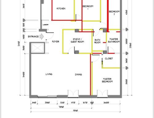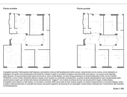 I soffitti sono alti 3 metri e non amiamo molto i soffitti ribassati. Abbiamo comunque ipotizzato di ribbassare una minima parte per facilitare l’installazione di un impianto di condizionamento canalizzato (5/6 bocchette);