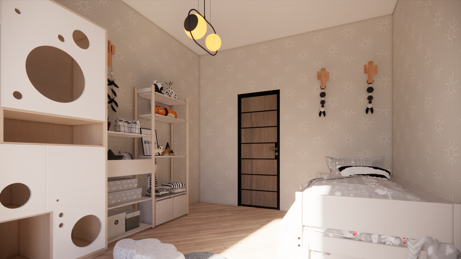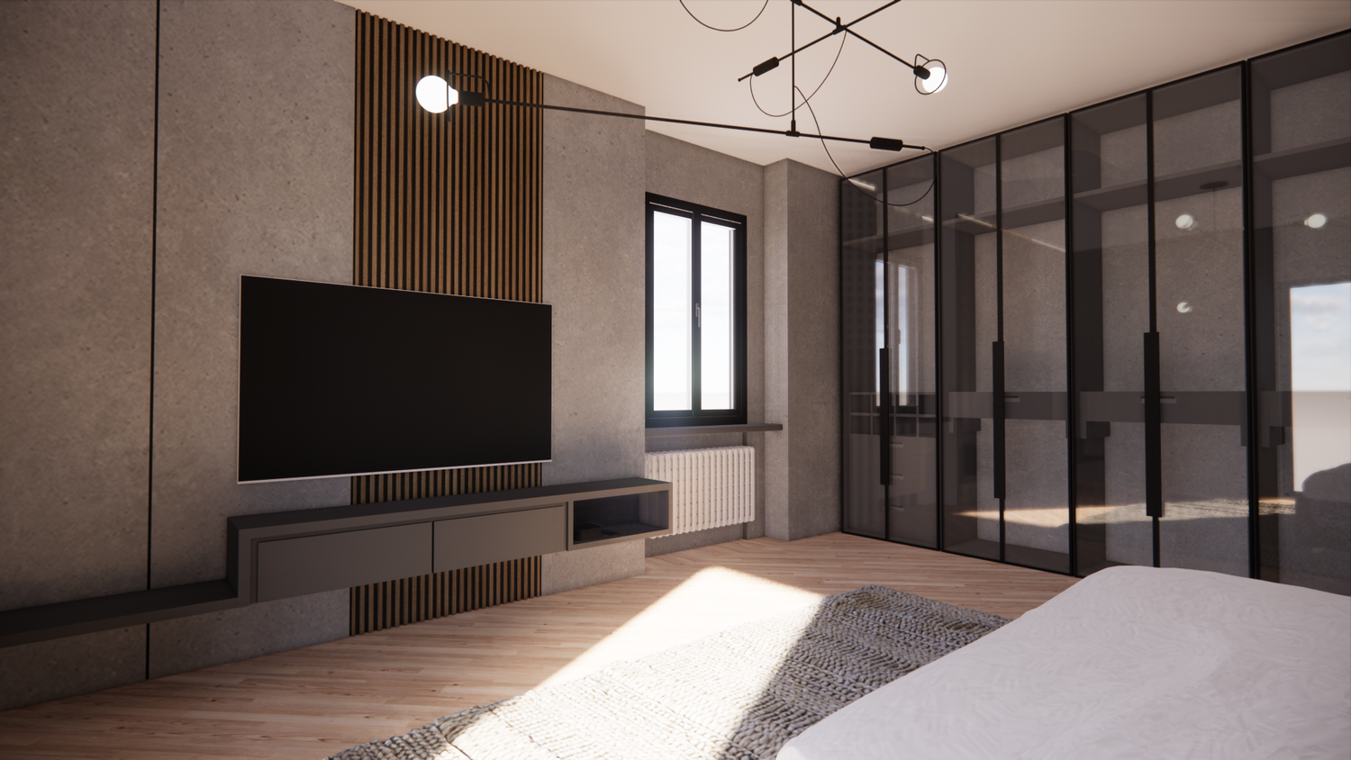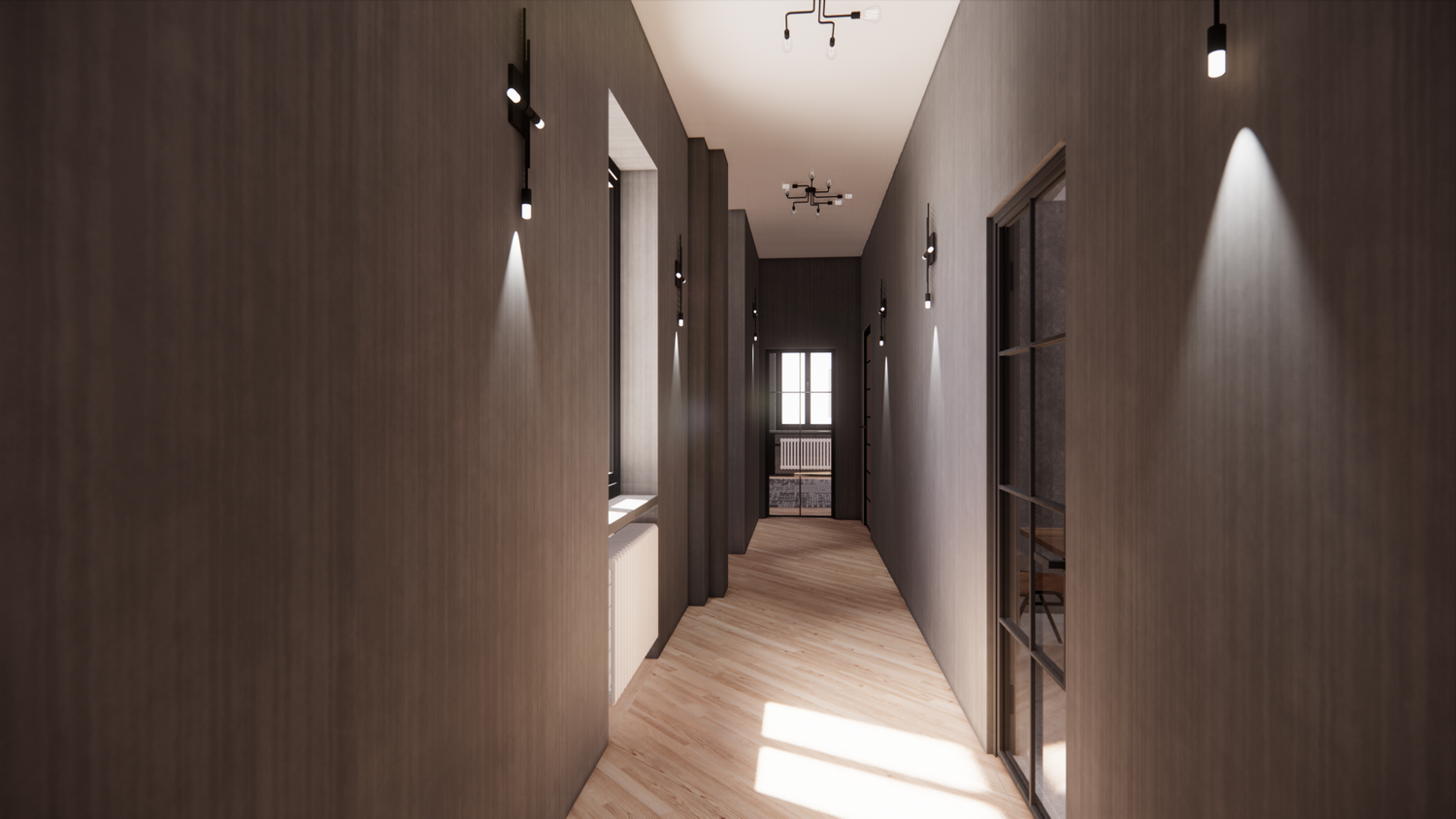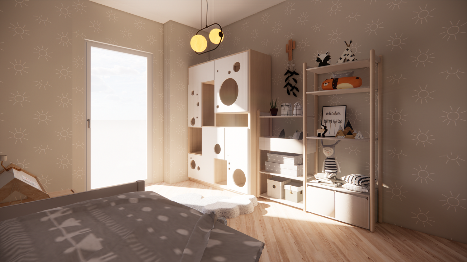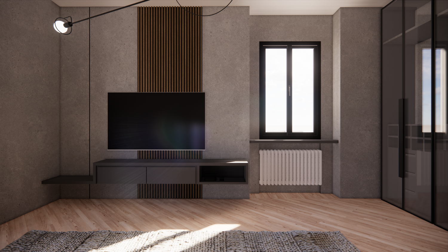 Il progetto prevede un rinnovamento totale degli interni del vostro appartamento, mantenendo la disposizione attuale delle mura. Il parquet esistente sarà laminato e rinnovato in una tonalità più chiara. Lo stile scelto è moderno e industrial, come da voi richiesto, con materiali come metallo, cemento e legno per valorizzare la luminosità e creare un ambiente caldo e accogliente. sono stati cambiati anche finestre, porte, camere da letto, cucina e bagni, per ottimizzare gli spazi e rispondere alle esigenze di una famiglia giovane in crescita.
