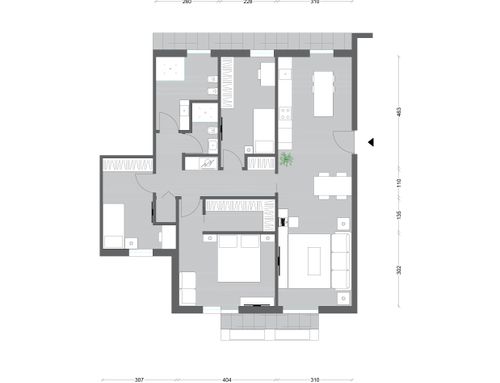Hello everyone, we are a family of 4 people, two of whom are children, a boy and a girl, we would like to create a house project with a modern and welcoming style with the possibility of upsetting the rooms and thus obtaining two bathrooms, living room kitchen maybe with central island and two bedrooms or maybe a double room and two smaller ones for the children making the most of the space for a closet where possible We have chosen to buy a render view, we would like to see how the living room kitchen could look like.