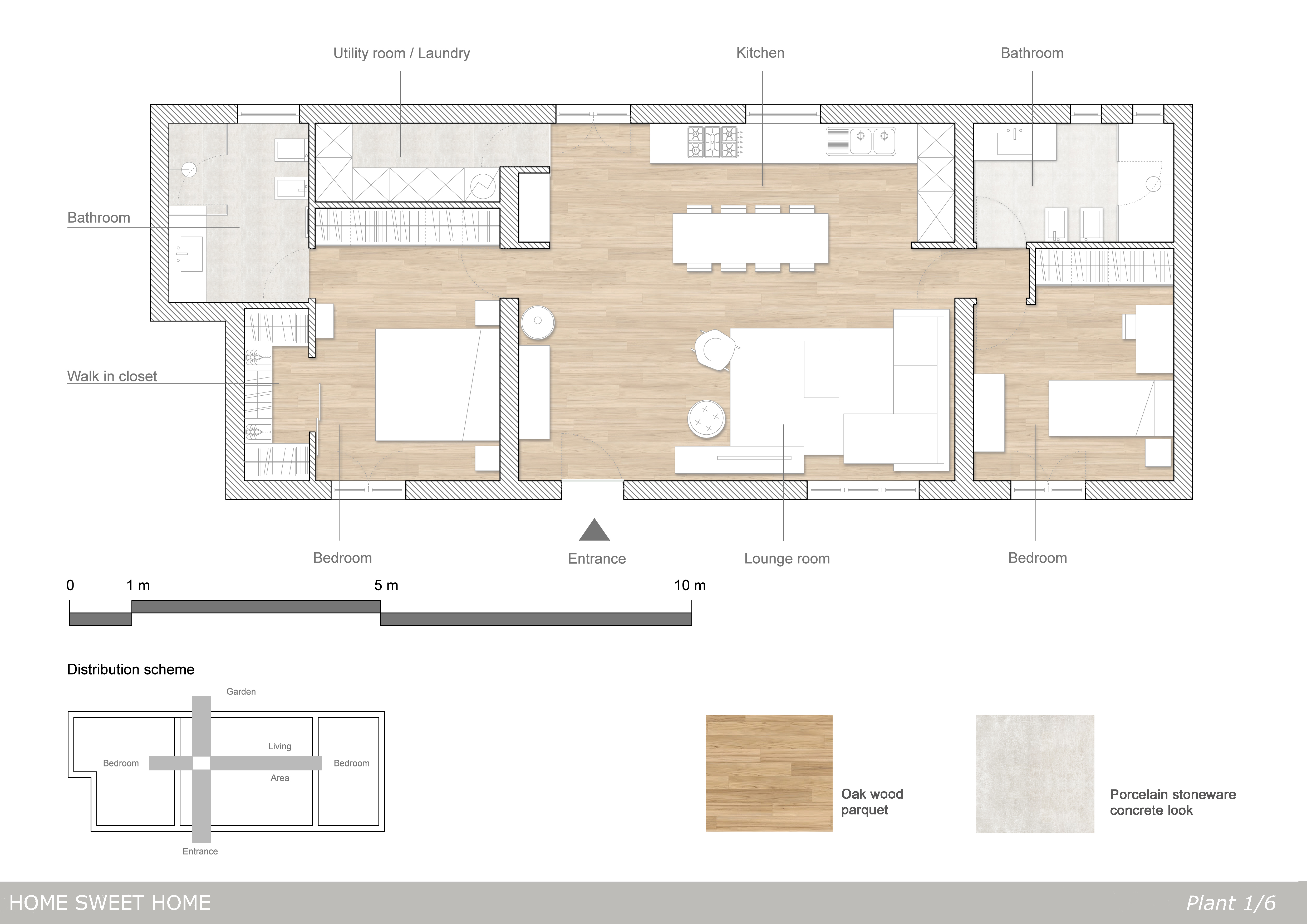 I'd like a house that mix rustic and chic mood with parquet floor, white beamed ceiling, ceramic stove in the dining room, walk-in closet in the bedroom. In short, a perfect mix of environments that recall the countryside and the city since the house is located in the city but it seems to be in the countryside !!