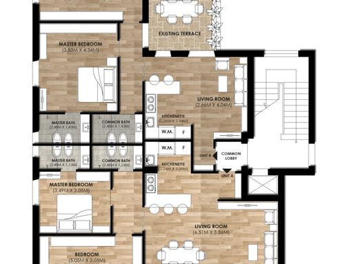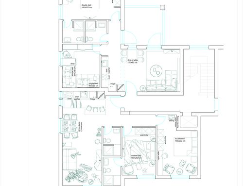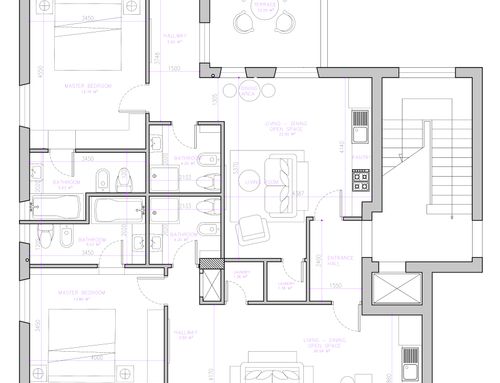 Solicitud: División de la superficie actual del apartamento (150m²) en dos apartamentos, cada uno debe tener las siguientes características: