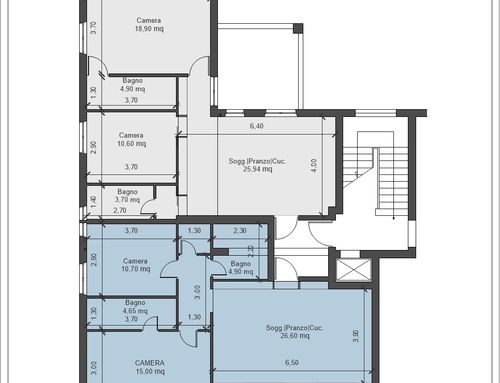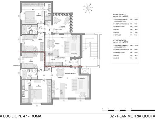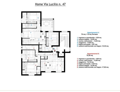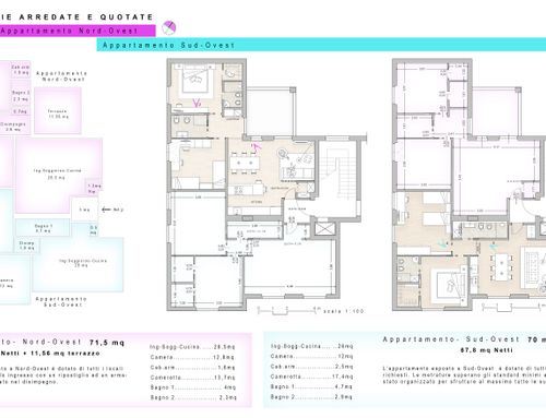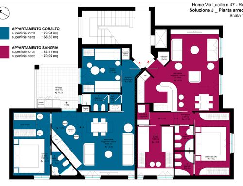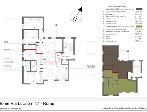 Divisione dell'attuale appartamento di superficie mq. 150,00 in due appartamenti aventi ognuno le seguenti caratteristiche: