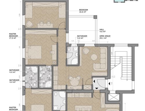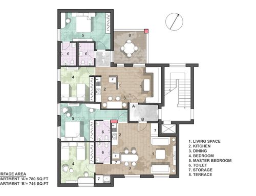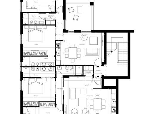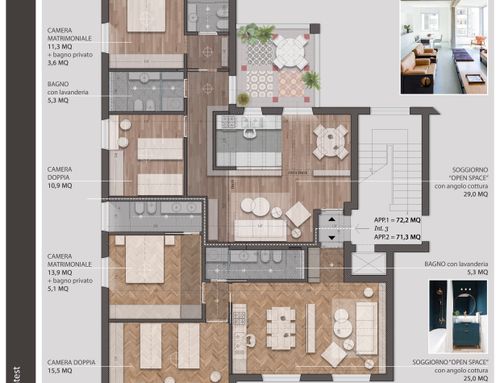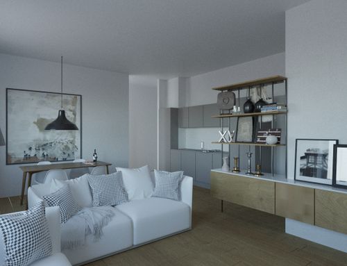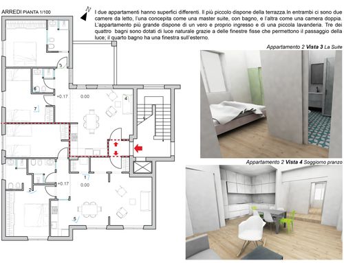 Almeno due renders per ogni appartamento.