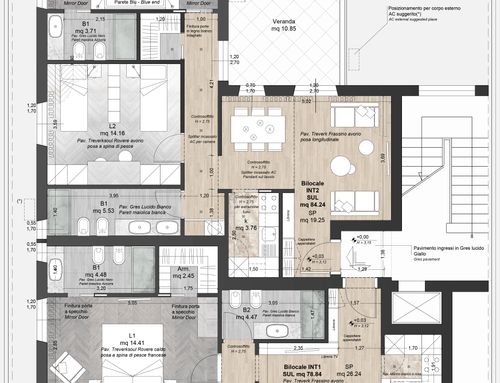 Internal flooring preferably in parquet or porcelain stoneware with wood effect;