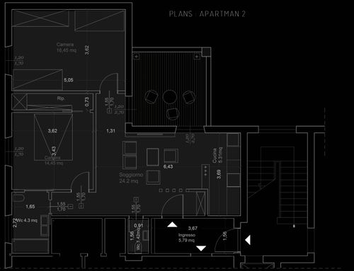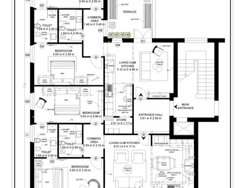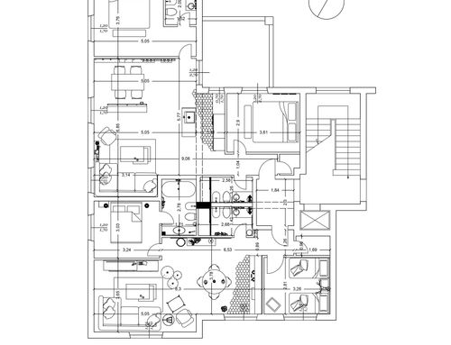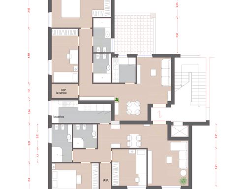 At the current entrance, within the surface of the apartment, it will be necessary to provide a common hallway for access to the two apartments to be built.