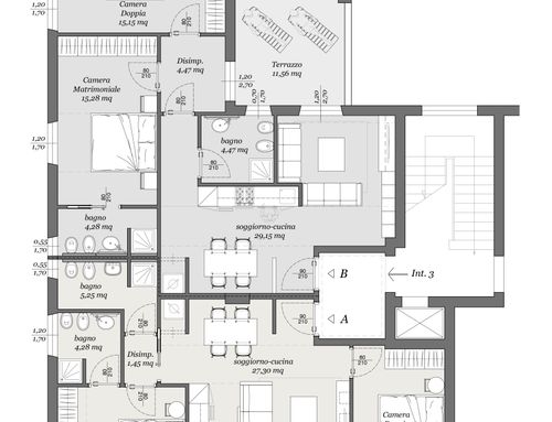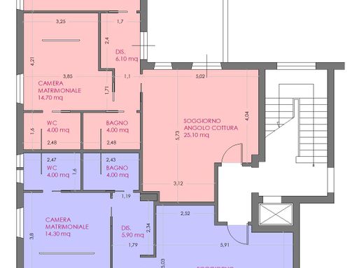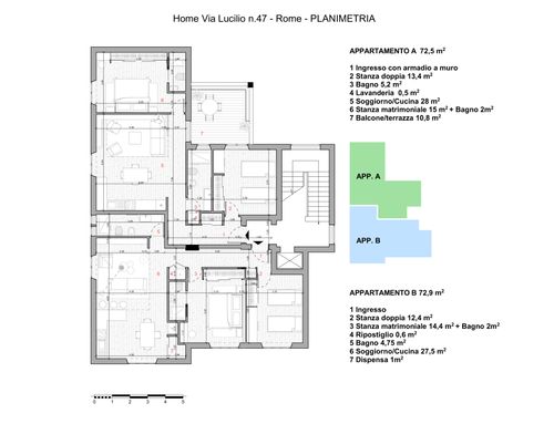 Division of the current surface apartment sqm. 150,00 into two apartments each having the following characteristics: