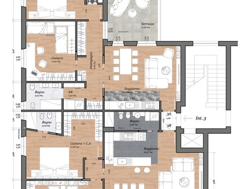 Pavimentazione interna preferibilmente in parquet o gres porcellanato effetto legno;