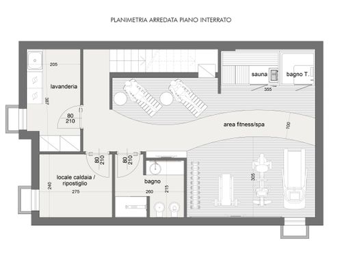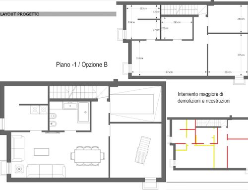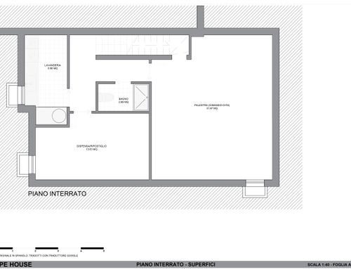 The tavern (level -1) will host the laundry and boiler room, a large storage room and an area dedicated to leisure and fitness activities. Currently there is no bathroom, probably because the drain pipe, you can see in one of the photos, is located about 1.5 m from the floor. The idea is to include a fitness area, bathroom and TV.
