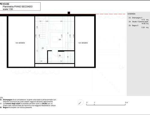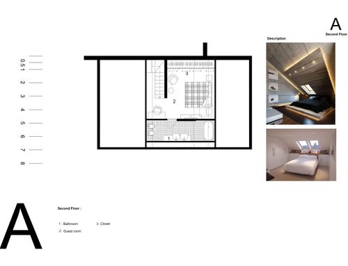 Finalmente, se accede al ático a través de una escalera en espiral. El área estará dedicada a los huéspedes. Asà que tendrá un baño especial y se deberá racionalizar para aprovechar al máximo el espacio disponible.