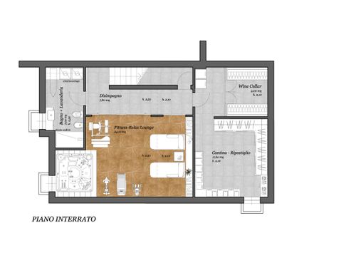 La taberna (nivel -1) albergará la lavanderĂa y la sala de calderas, un gran trastero y un área dedicada a actividades de ocio y fitness.
