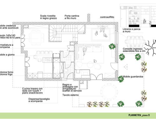 Level 0 opens with a large living room. We would like to make this living room very cozy, taking advantage of the fireplace, perhaps with a suitable covering and inserting the TV above it. The floor should be parquet, very resistant because it leads directly through the front door and outside there is a garden. From the living room leads through a staircase of three steps to a large area that has a bathroom on its left, to be enhanced and optimized because it will be the most used, even by guests.