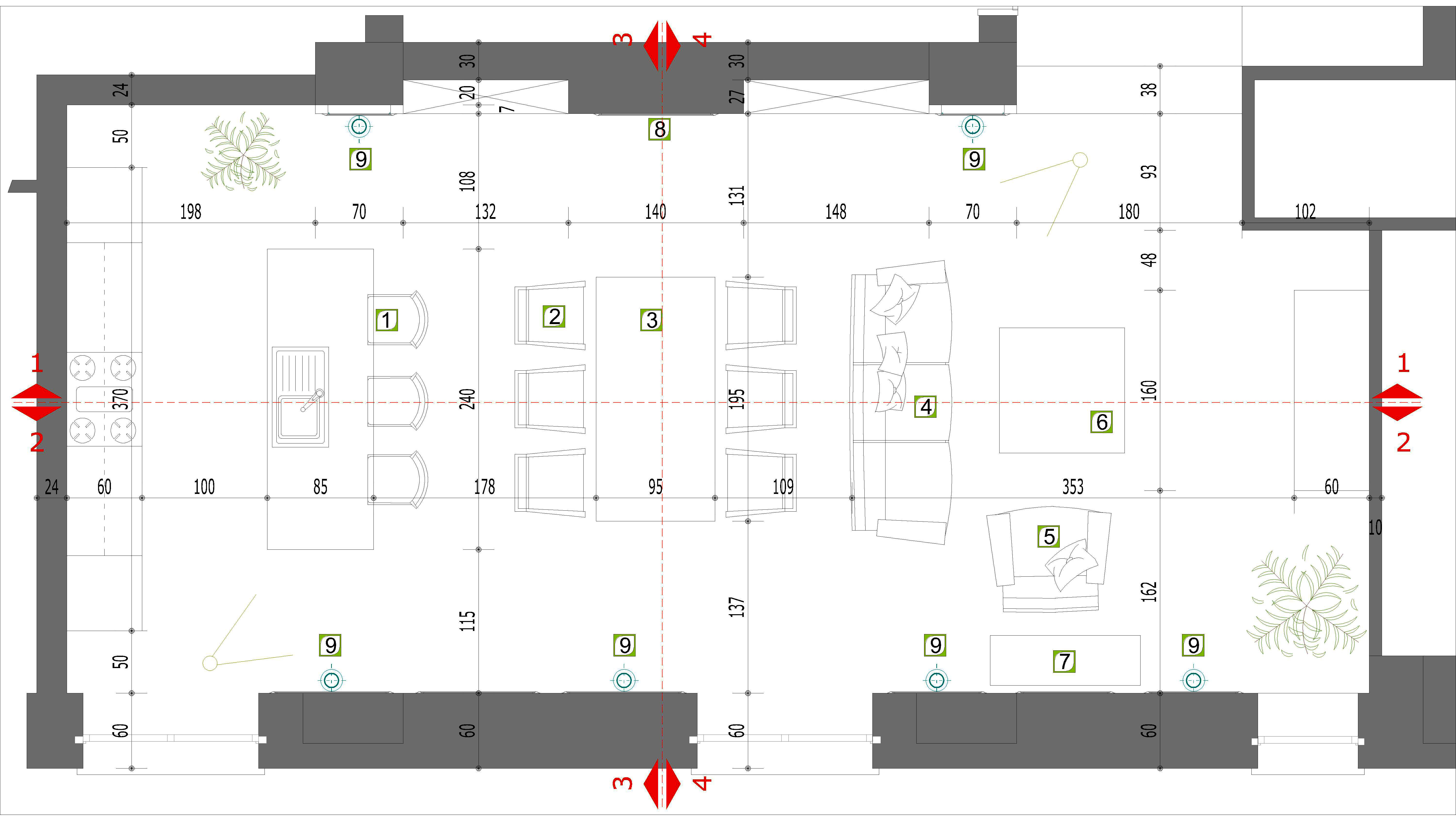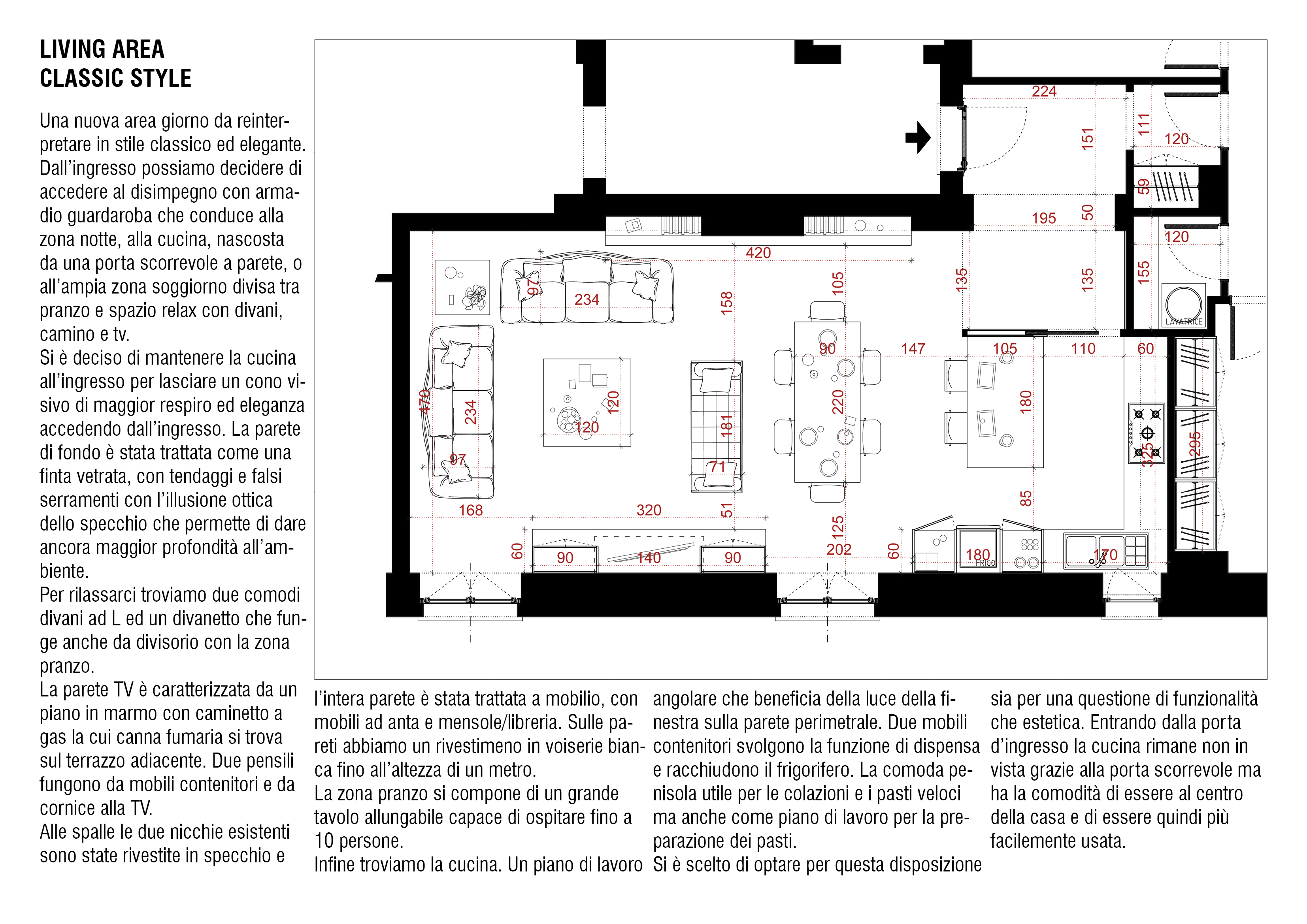 - Dividere l’ambiente cucina dall’ambiente salone? In che modo? con due grandi porte a scrigno?