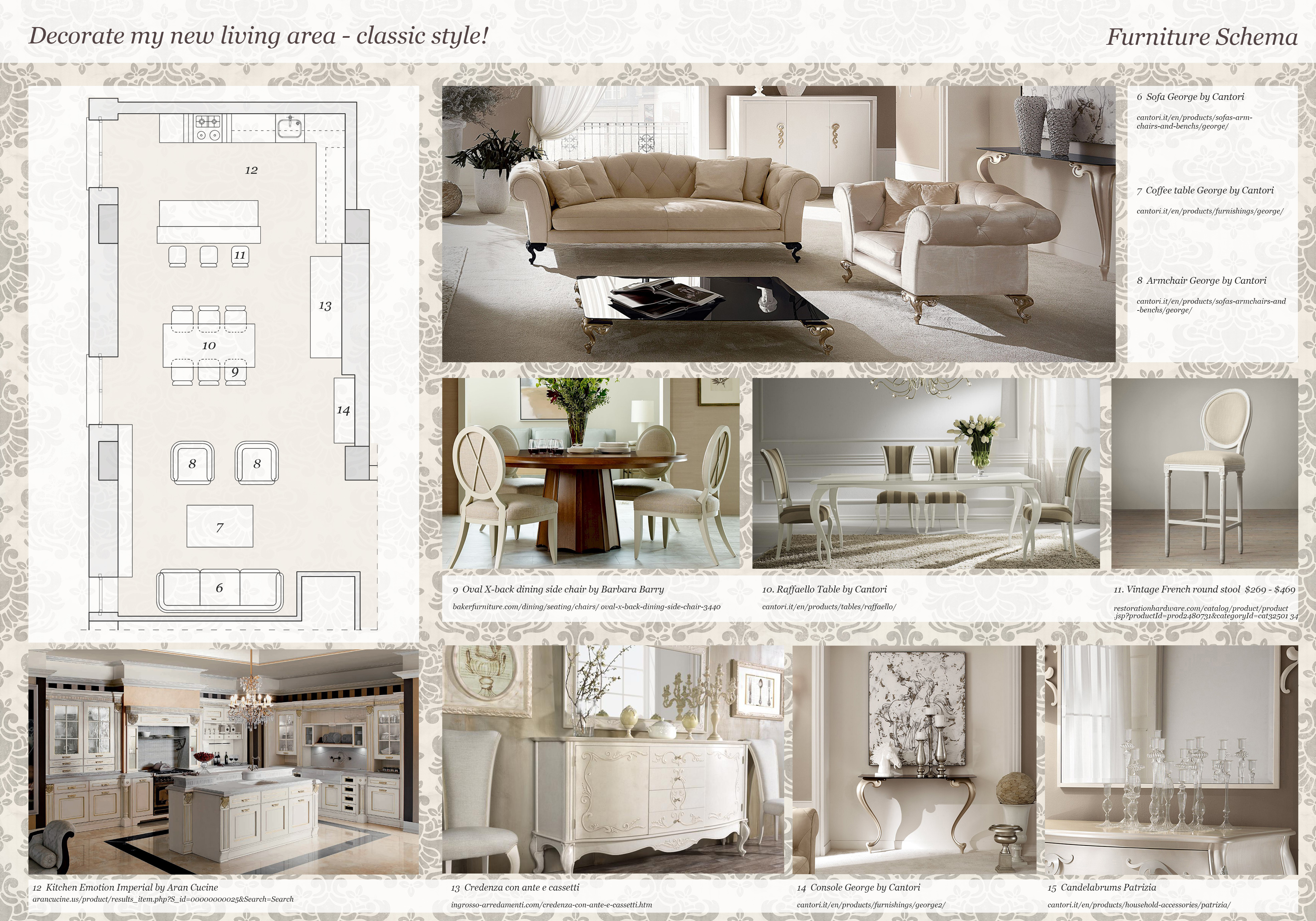 Vorrei una bella cucina classica con una penisola oppure un’isola e con dei sgabelli per poter fare colazione o pranzi veloci. Una cappa molto potente per poter catturare i fumi. La cucina non la voglio vicino l’ingresso. La cucina mi piacerebbe di color panna, con qualche superficie in marmo Emperador da poter abbinare a quella dei pavimenti.