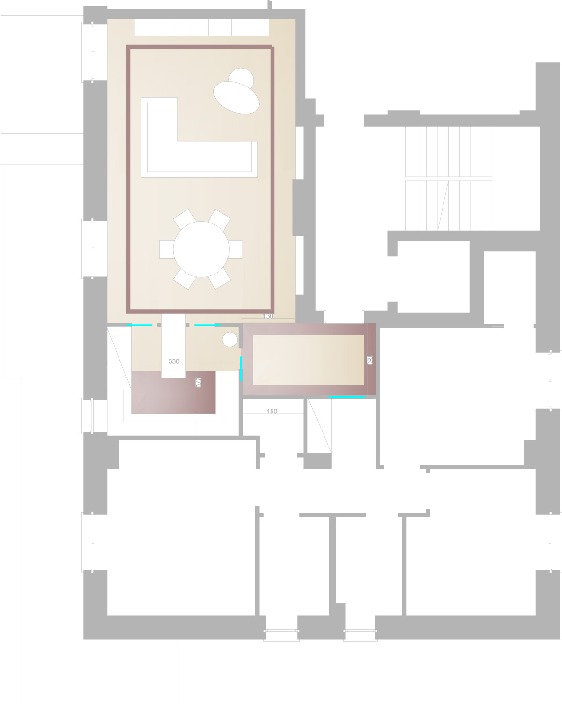 Tra la zona dell’ingresso e la zona del salone vorrei avere un arco che copra una trave portante di cemento spessa 40 cm circa.