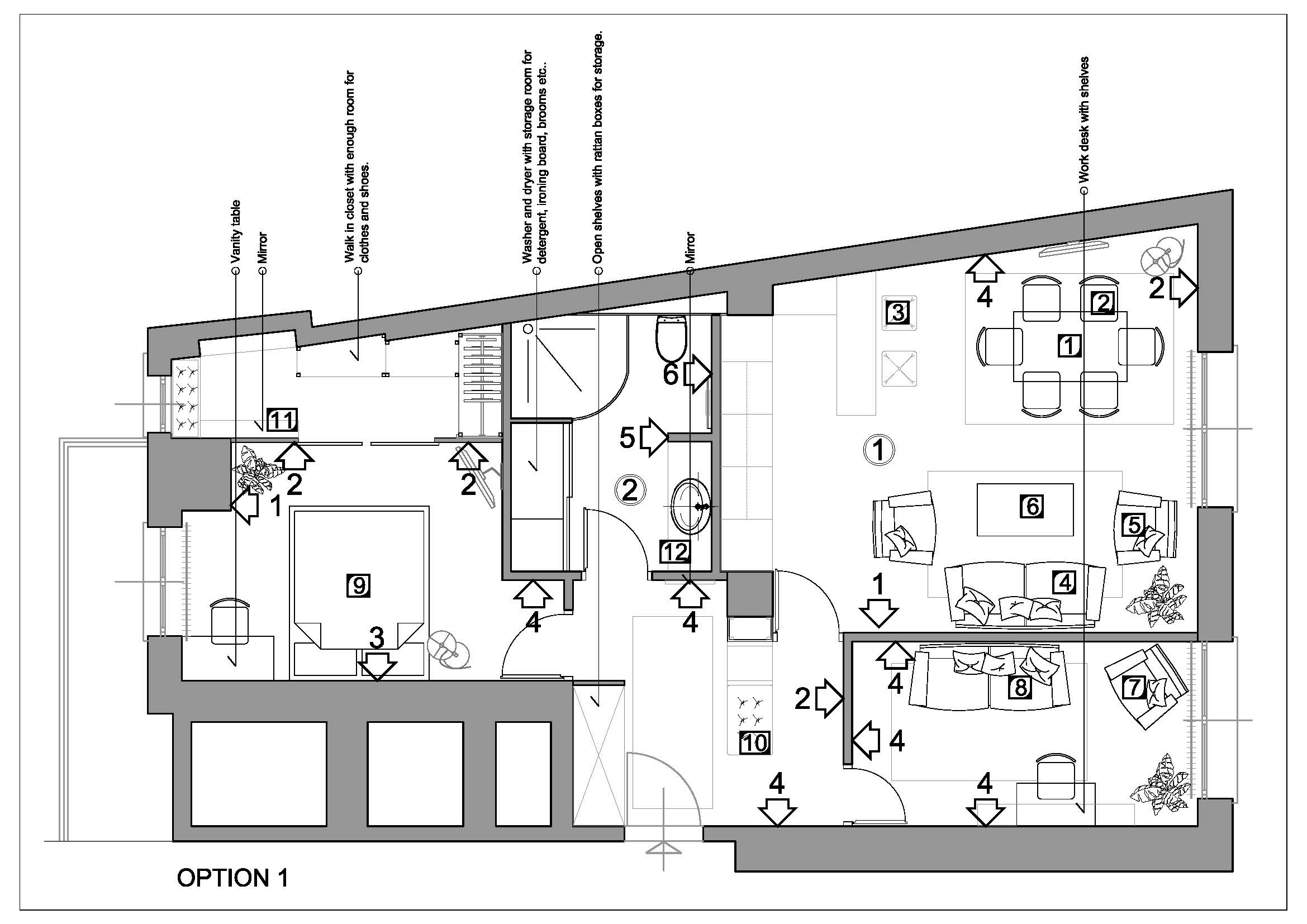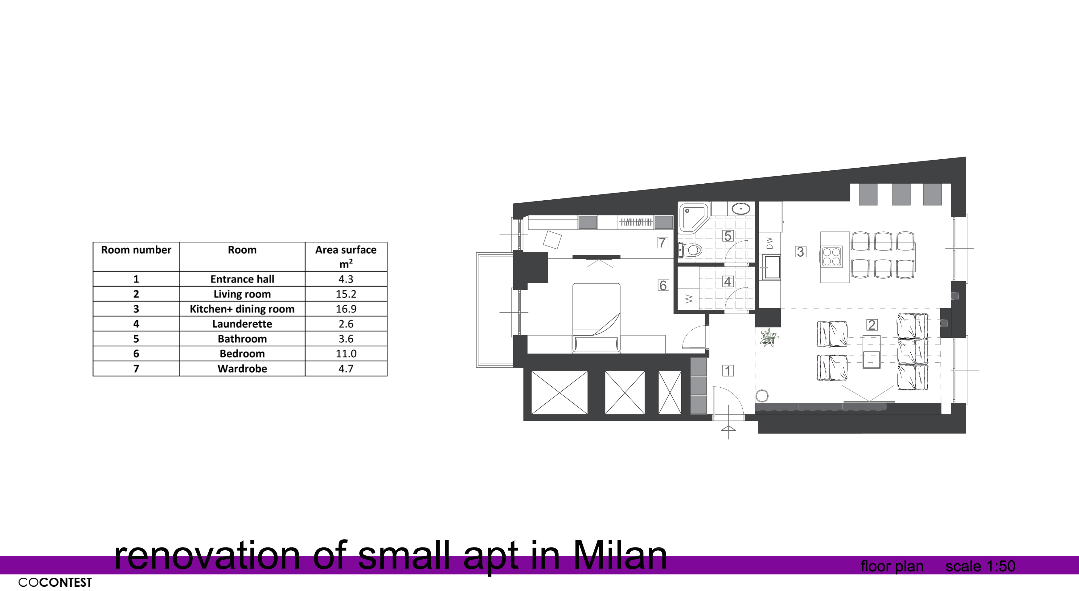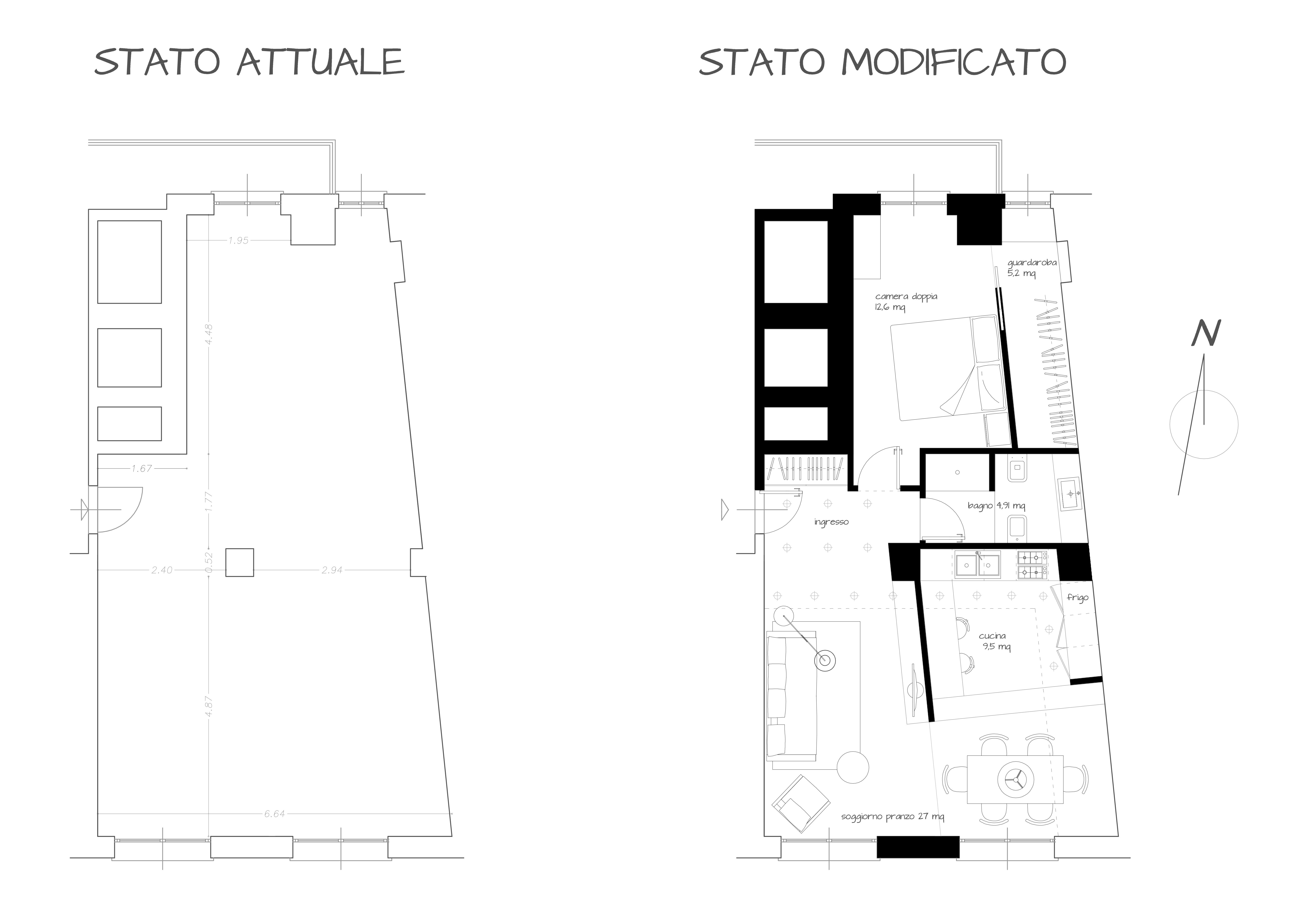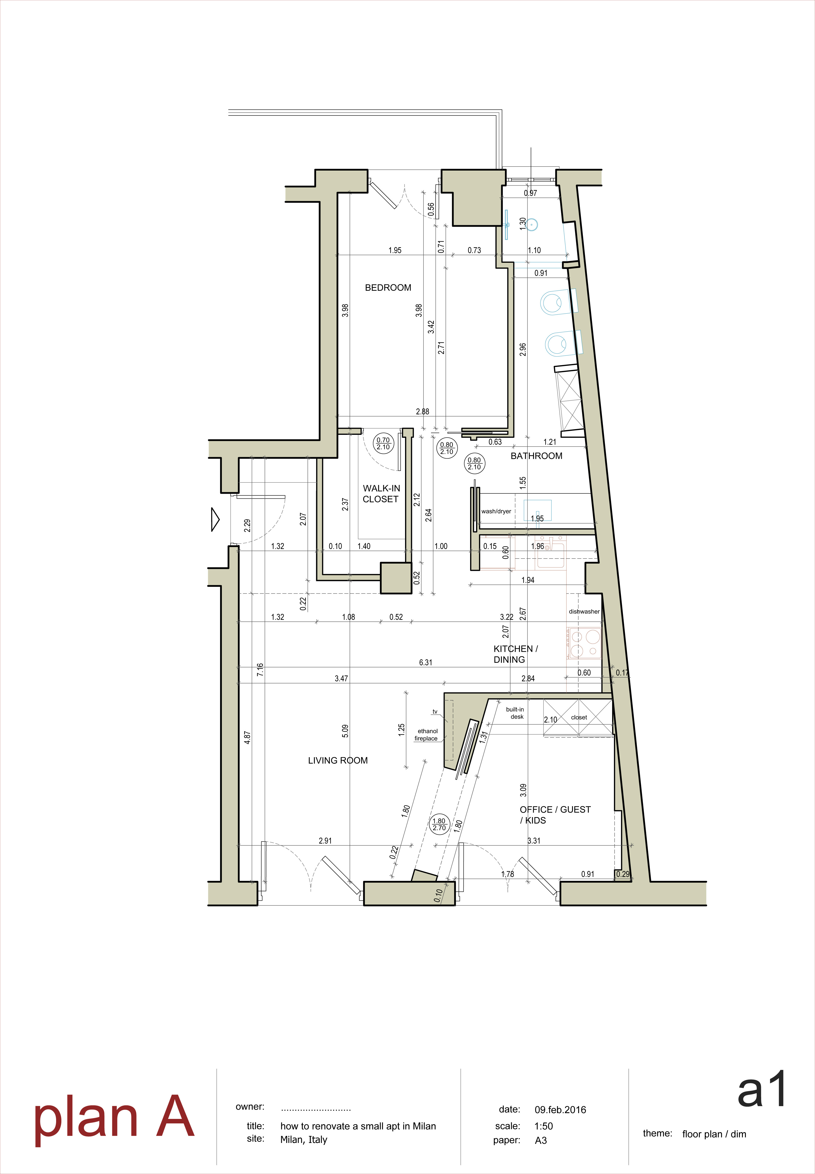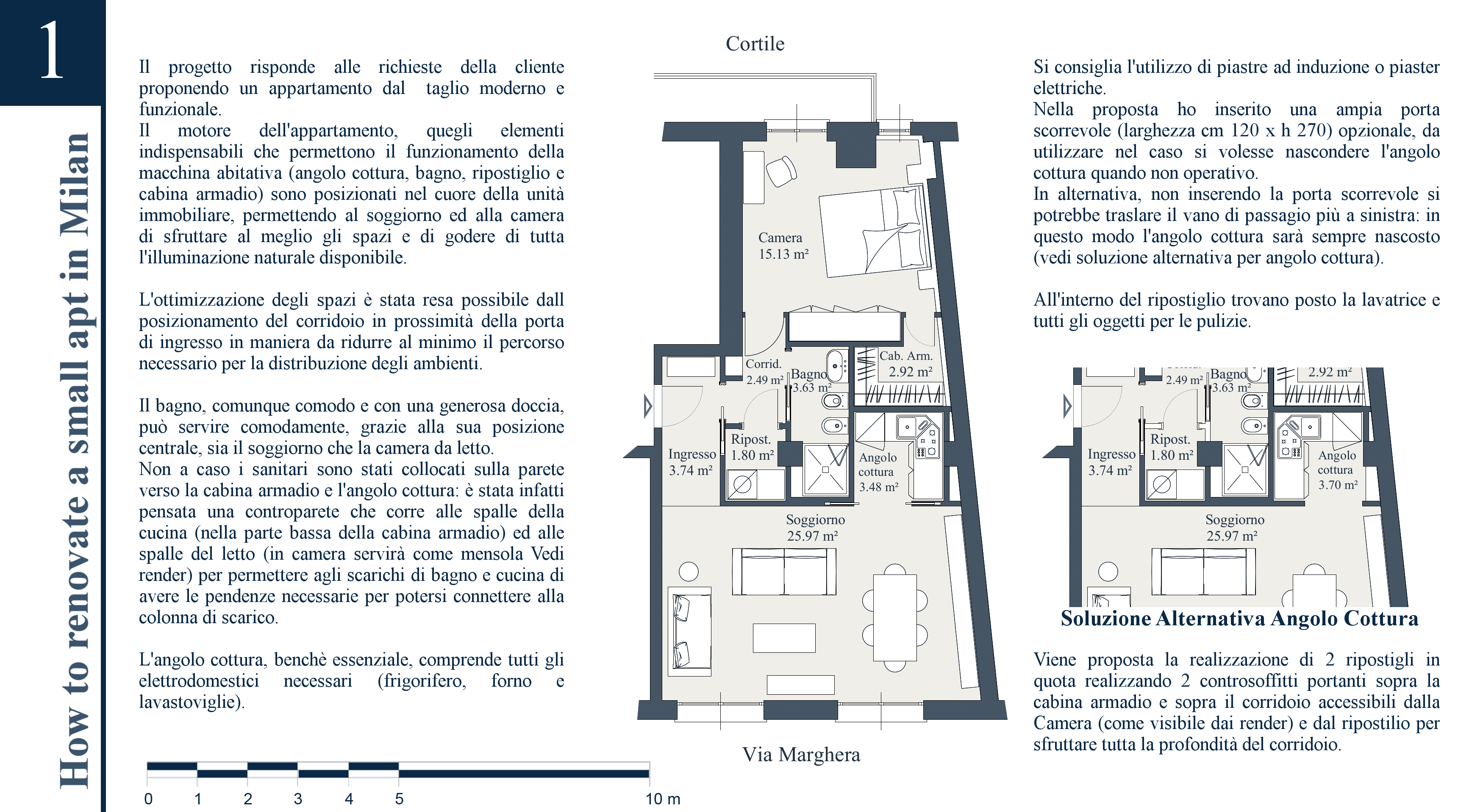 Desidero completamente rifare l'appartamento sia come taglio che come finiture. In questa fase vorrei avere idee sulla disposizione interna. Vorrei avere un ampia zona living con cucina a vista sul fronte via Marghera.