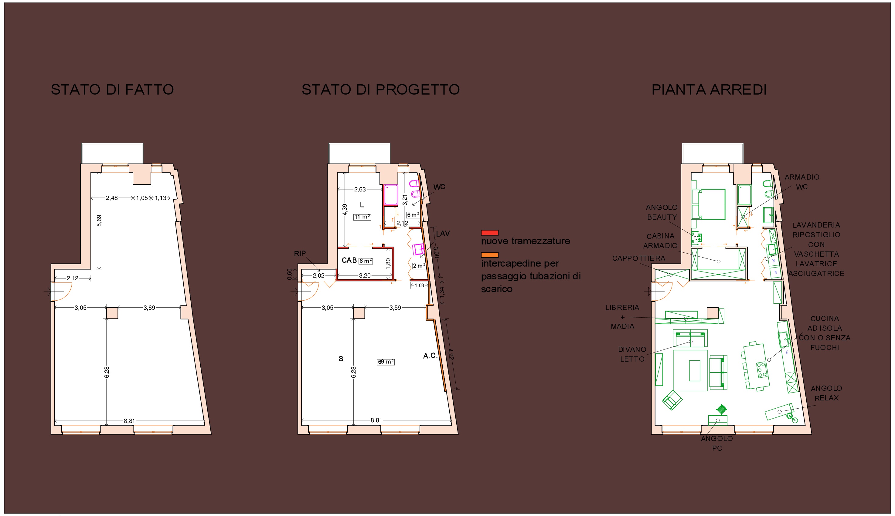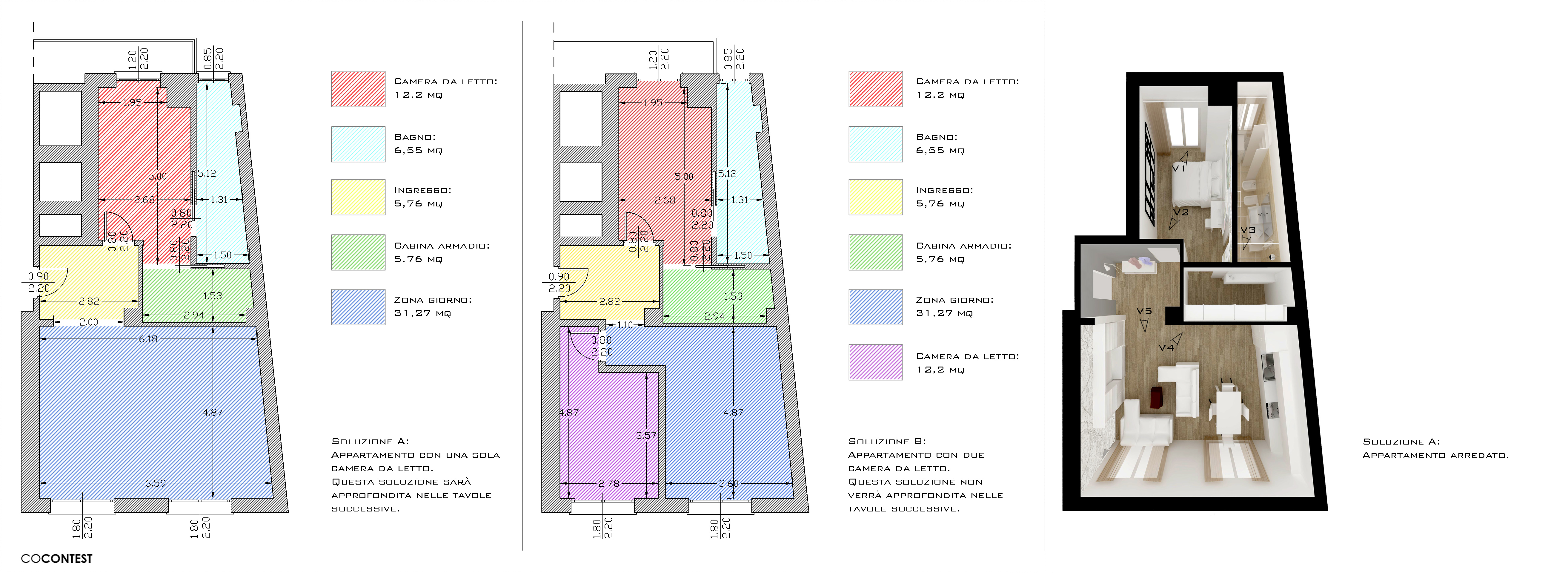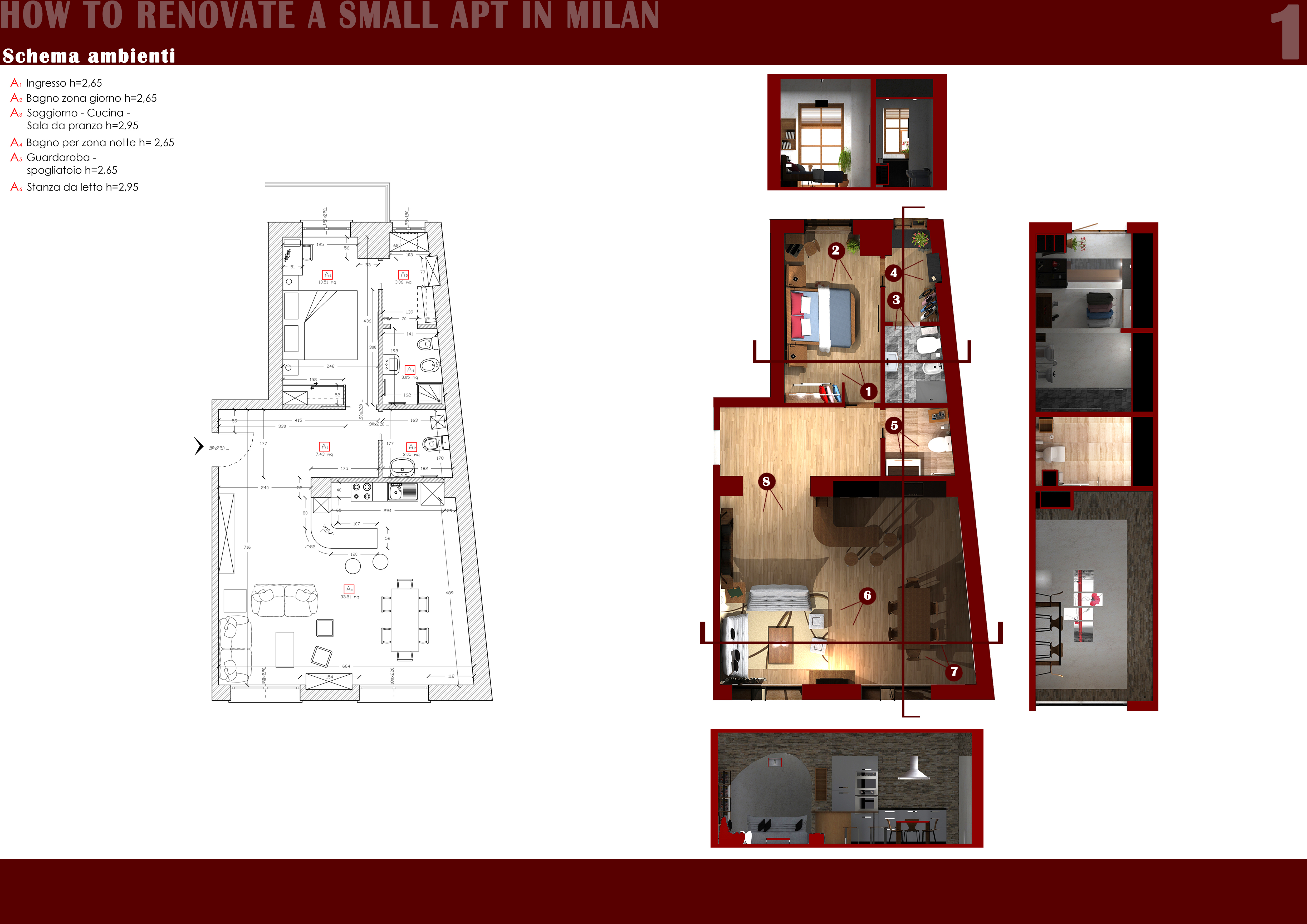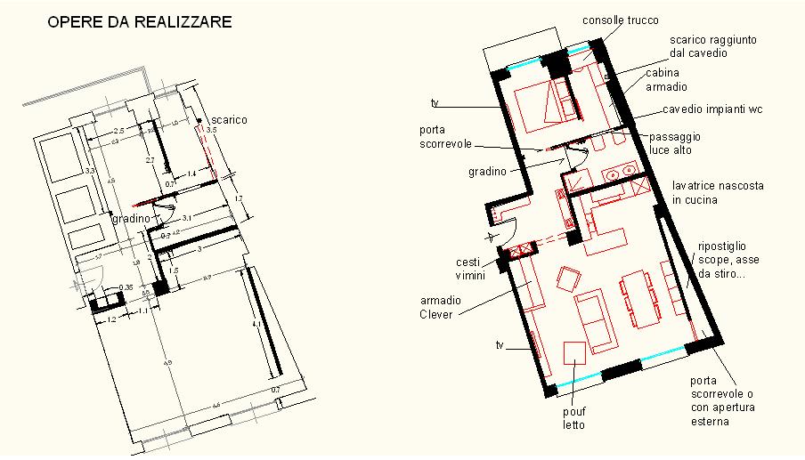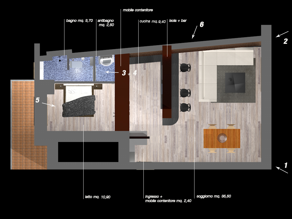 Non mi interessa tanto vedere arredi, quando invece taglio, render 3D soprattutto della zona notte, armadio e bagno.