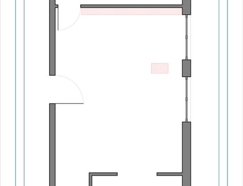1) It is necessary to make a plasterboard-wall/bookcase that will include (and hide) the fan coil. The space to occupy is the entire wall available from the window to the door. The space available from the wall to the beginning of the window is 25cm (from the corner of the wall and the window). It may be considered a greater space not reaching the corner of the wall, but it is necessary to guarantee the opening of the window. The fan coil must be replaced with a built-in one. This is a hot/cold water fan coil with centralized heating/cooling system. The plasterboard-wall must have a base about 75cm high with doors, an empty space of 80cm starting from the base to put the TV, and above a series of shelves with a useful height of 35cm. The ceiling is 283cm high. A preliminary drawing is attached.