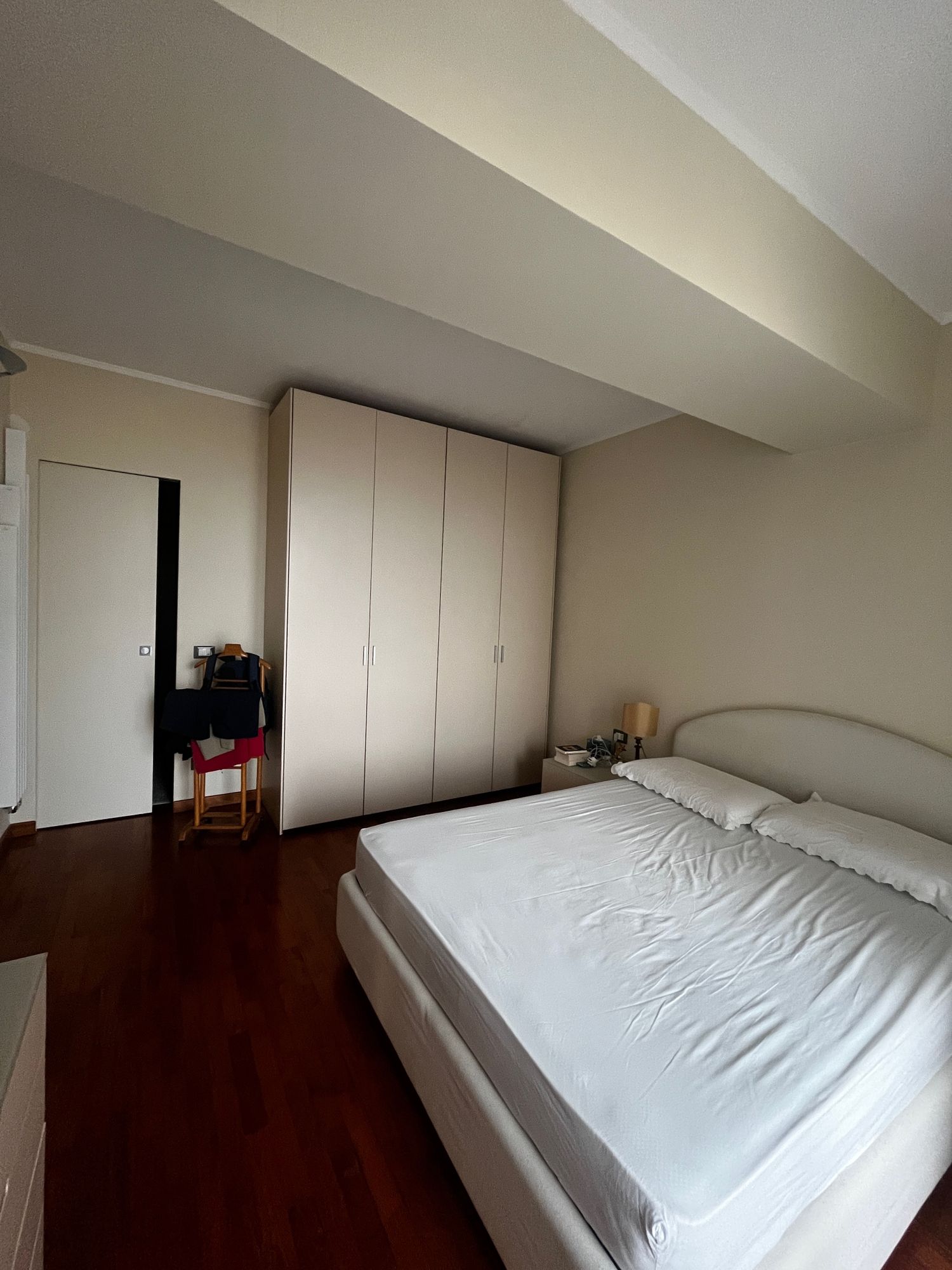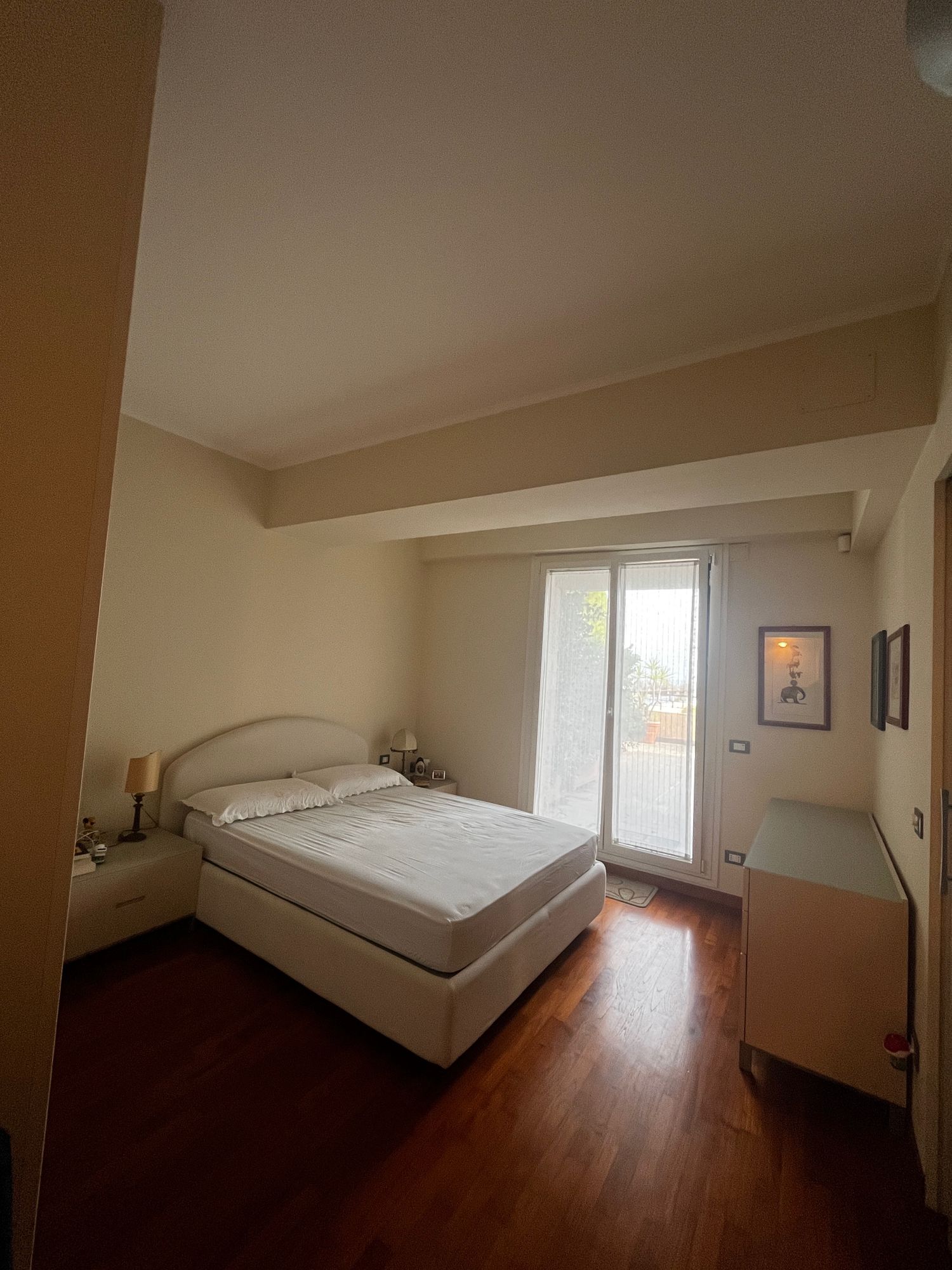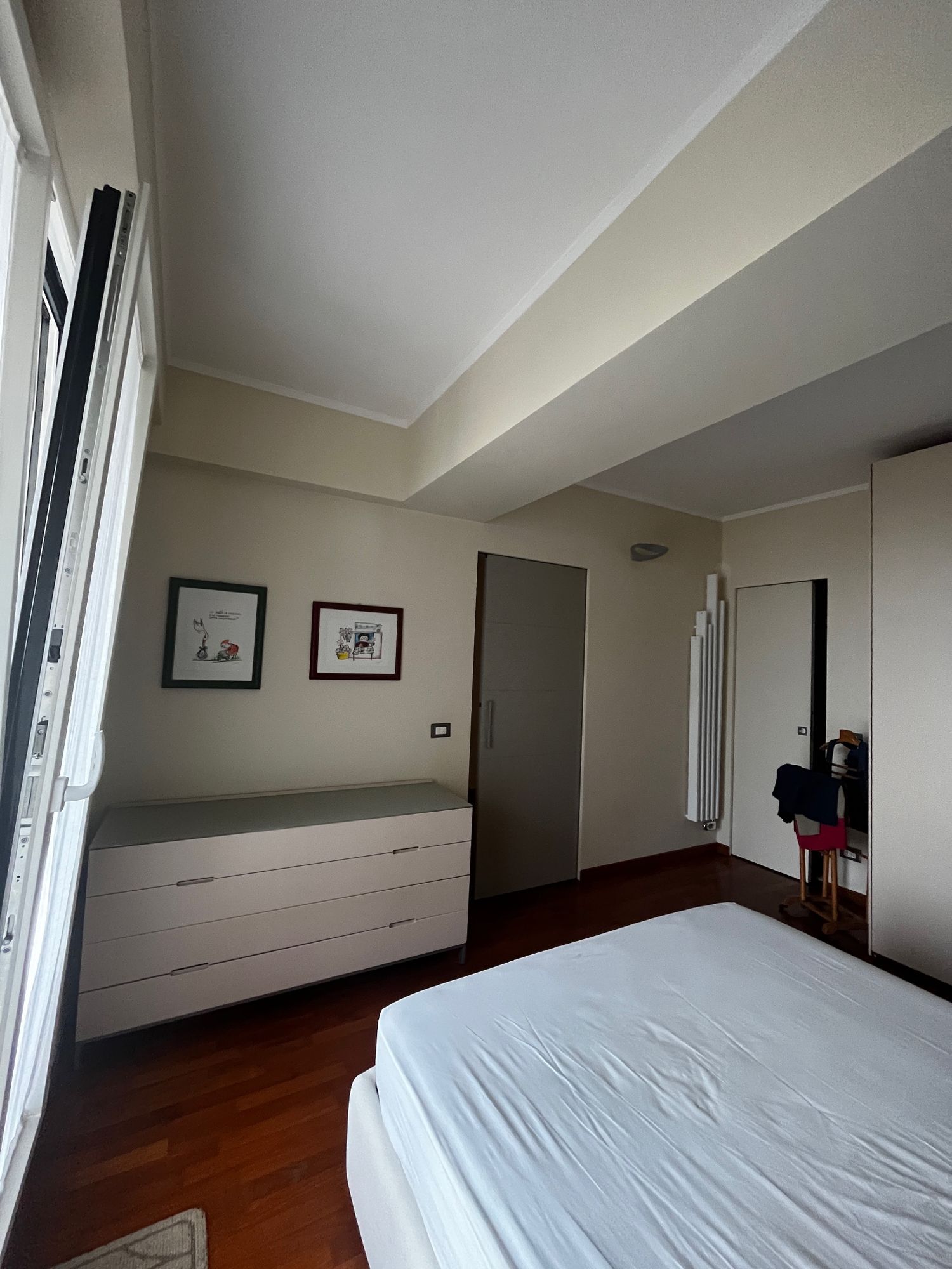 Una camera da letto piccola e con una trave centrale ( a copertura di un pluviale condominiale )
