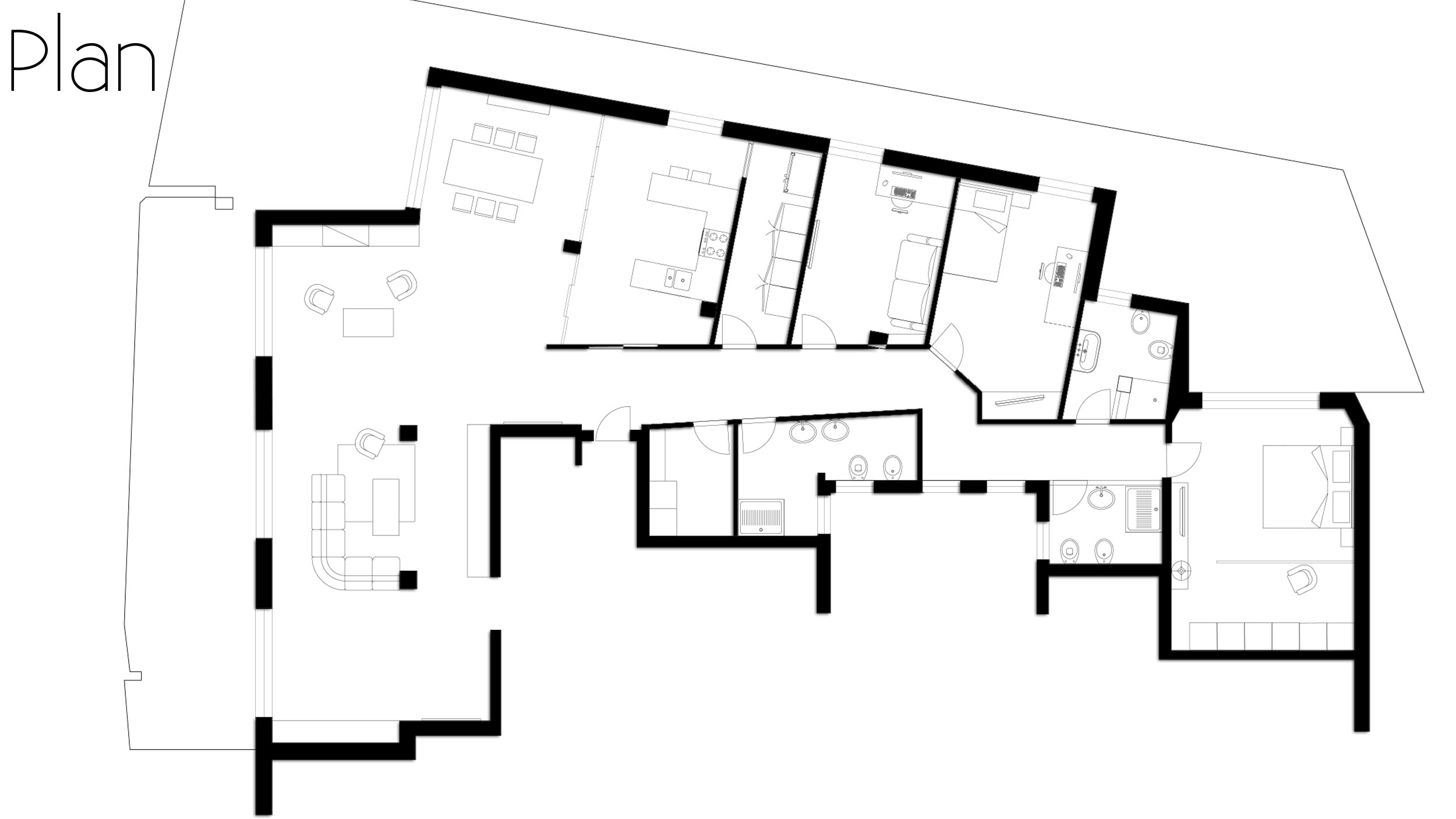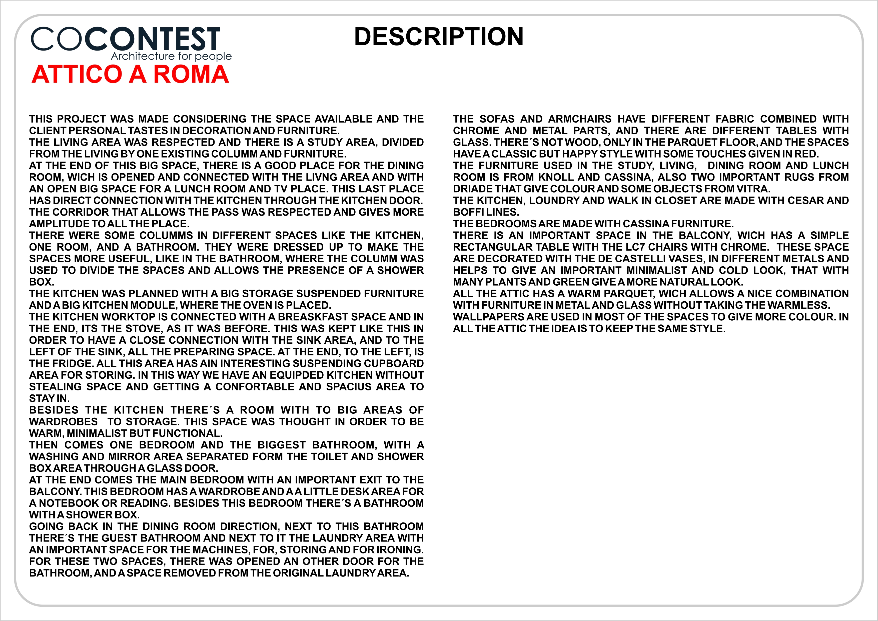 l'attico è di circa 185 mq + un terrazzo di 110 mq ho caricato sia la piantina attuale che quella senza tramezzi. ha un ingresso principale che immette in un salone con 2 colonne. l'attuale arredamento visibile nelle foto è del precedente padrone di casa e non rappresenta i miei gusti. l'elemento positivo è che non esistono muri portanti ma sono alcune colonne che limitano gli spazi e devono essere sfruttate al meglio. ho indicato dove sono posizionati attualmente i bagni e la cucina per capire dove sono gli scarichi principali. è una casa molto luminosa perché è esposta a sud-est e sud-ovest. vi è anche un camino ubicato nel salone che vorrei mantenere.