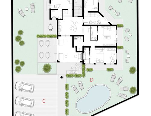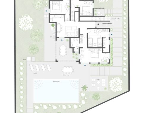 I have to divide the villa into two zones. Upstairs a sleeping area, two bathrooms, kitchen, living room and a private access from the ground floor. On the ground floor I have to create three/four bedrooms with bathrooms - 14 m2 of minimum surface area for each room - each with independent access, a kitchen and a common area. In the re-design of the spaces of my villa by the sea, I would like a clear break with the city environment to be perceived and above all a clean space with few objects. The mood must be simple and I would like one or two "instagrammable" corners that make it particularly recognizable on websites. I like white and light, a few colored elements (cold colors like blue) and elements with natural materials (wood, bamboo, rattan). Linearity, calibrated spaces and practicality. As suggestions I think of the houses of the Greek islands, the Aeolian dwellings or the beautiful Apulian trulli.