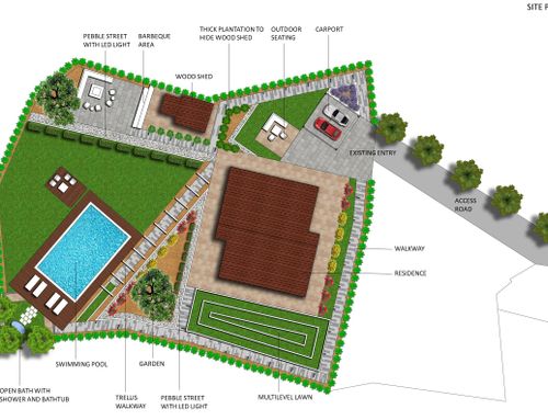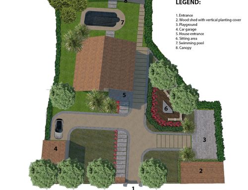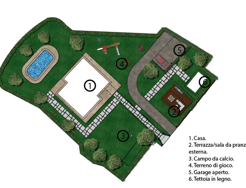 Creazione di un giardino con tettoia auto. Il progetto deve prevedere un bel viale per l'ingresso delle auto. Guardando la foto se ci mettiamo con la casa alle spalle e il cancello d'ingresso frontale nel lato sinistro c'é un piccolo capannone che viene utilizzato come rimessa legna. Nel progetto cercherei di isolare quest'area magari con delle siepi in modo tale da non vederla. Riguardo l' area di fronte al portone di ingresso al momento è realizzato una specie di triangolo che a mio avviso deve sparire, preferirei allargare l'area creando un quadrato. Visto l'enorme caos dell'area vorrei un progetto che portasse semplicemente ordine.