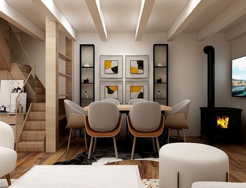 We also wanted to remove the cabinet in front of the kitchen countertop and create a cabinet - bookcase that was closed at the bottom to be used as a ski jacket holder: 41 width and 58 depth (to remain in line with the other existing cabinet). We like the mountain style but in a modern version and we have no idea whether to make wood (will different woods look good?) We would like to have some suggestions on what to hang on the wall of the dining table. Thanks and good job !!