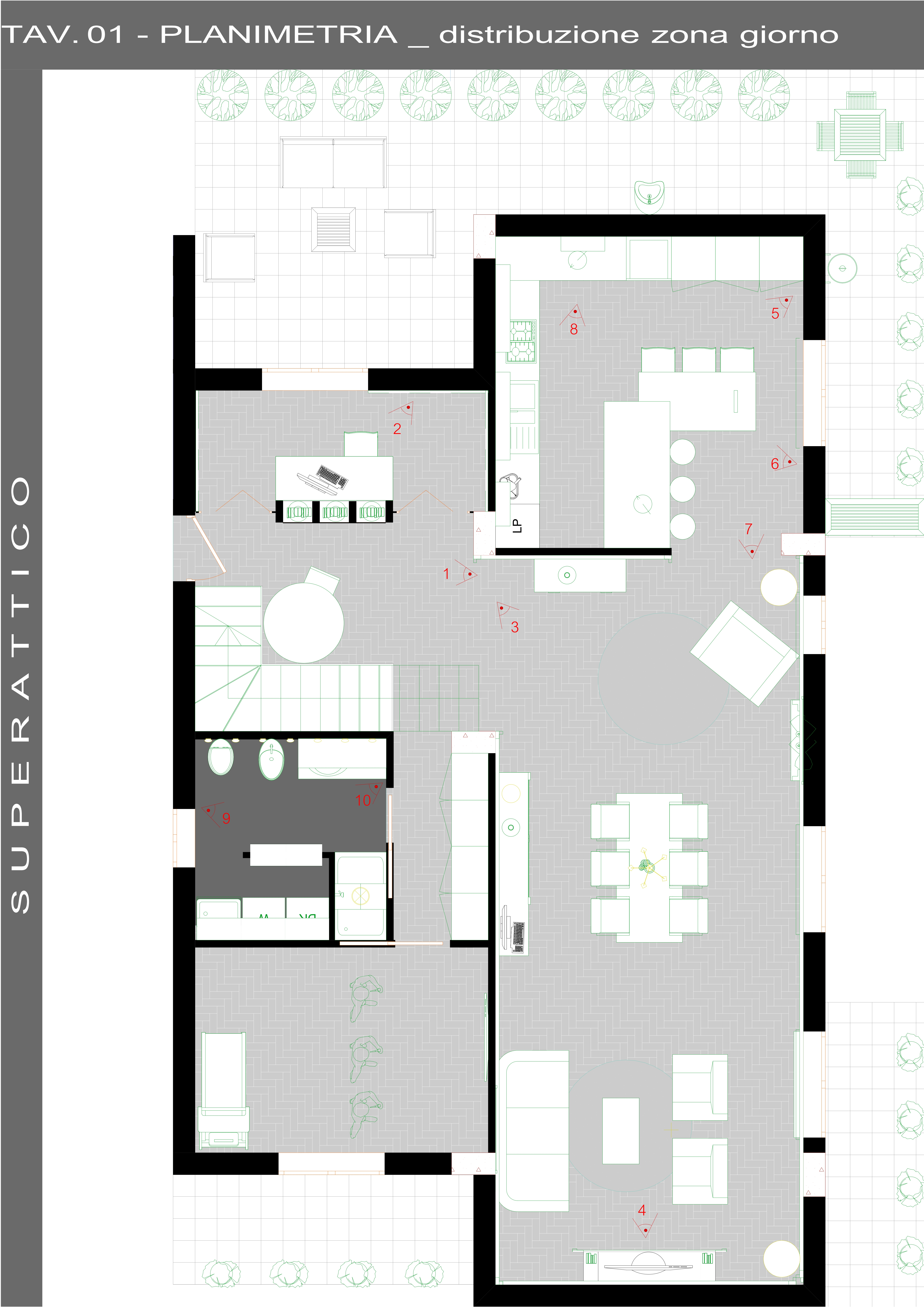 - nella sala da pranzo a vista vorremmo inserire un altro tavolo da 8/10 posti, rettangolare (pur mantenendo il tavolo tondo con 4 sedie da qualche altra parte);