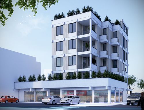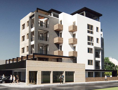 La terraza en el Ăşltimo piso (en el lado sureste) podrĂa ampliarse para cubrir el espacio en el piso de abajo.
