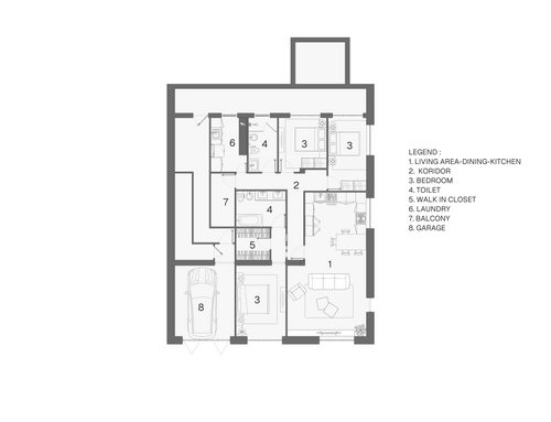 Será necesario dejar aproximadamente 4 metros para el garaje y un pasillo para acceder a la zona de la cámara de aire, donde se ubicará una lavandería.