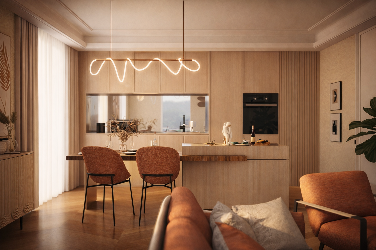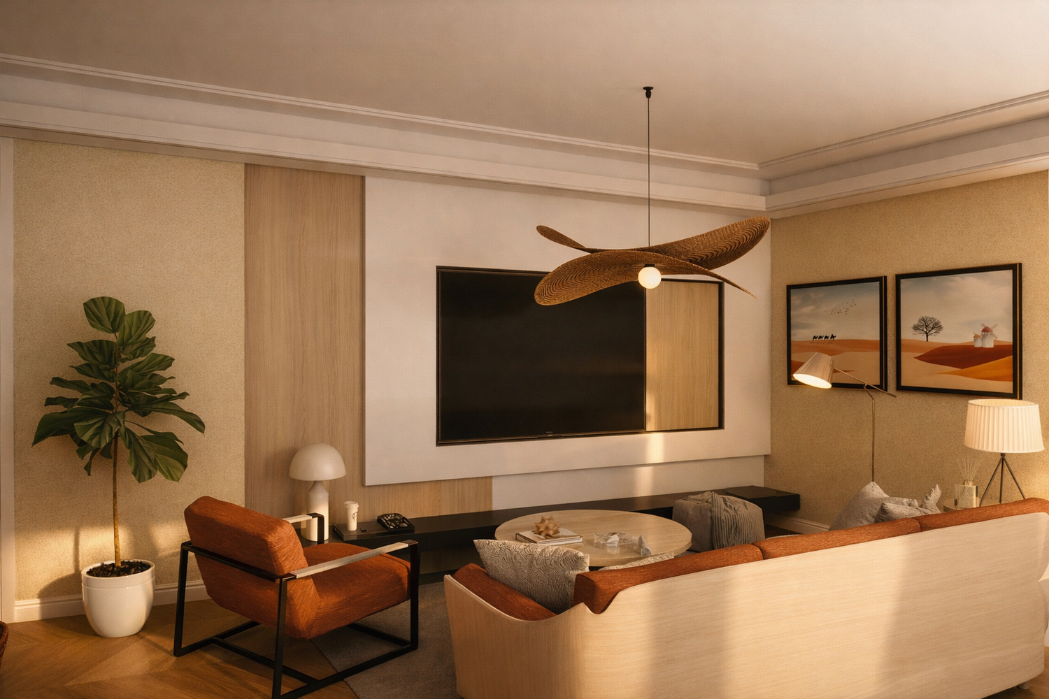 Il progetto propone una riorganizzazione contemporanea dell’abitazione, caratterizzata da uno stile moderno caldo, con richiami mediterranei e una palette cromatica ispirata ai toni autunnali: terracotta, verde oliva, beige caldi, sabbia e legni naturali. L’atmosfera risultante è accogliente, equilibrata ed elegante, ottenuta attraverso l’uso di materiali tattili e di una luce calda e diffusa.