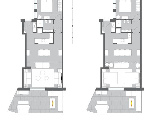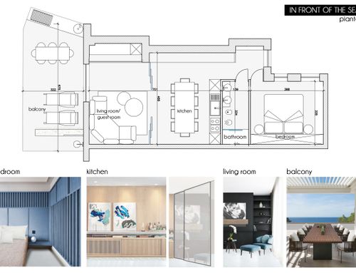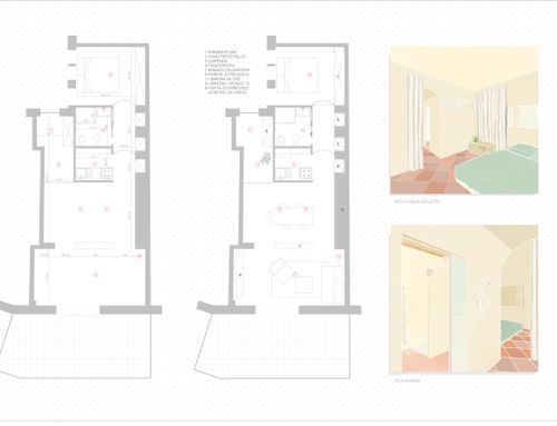 We would like to make our beach house (newly bought!!) modern, without completely upset it. We would like to increase the kitchen appeal (perhaps by changing the entrance to the living, splitting the living area (perhaps using a bookcase) in order to get a dining area divided from the living room, providing a place with a desk to work, making the most of the bathroom (we are willing to completely redesign it) and the bedroom (a closed wardrobe is not mandatory).In the end we would like at least 4/5 beds. We like the actual floor finishes, even if criticized by many, therefore we are open to any idea to enhance it (if possible :)).Finally, please keep in mind that all furnitures are totally replaceable (we love Chama LAGO sofas if it fit with your project idea) as well as the lights, furthermore we will add an air conditioner.Thank you very much for the help you will give us to improve our home. Saverio & Stefania