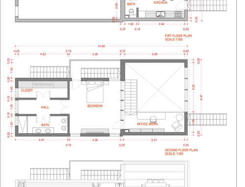 I'm thinking about building an additional separate loft space in my renovation. I'm including pictures of the layout of the 1st and 2nd floor and the current drawings of the house to get an idea of the space. There is also one concept drawing being added to give you an idea of space possible for 3rd floor. I can only build up on the current footprint of the house! Only uncovered stairs can take up new space when looking top down. The space will be tight. The most exciting aspect is that I can go up 22 feet!. The current house is 18 feet. So this would be a massive loft. Washington DC code says that it must only be one floor so I was thinking to make it a separate unit. Some conditions. I'd like the industrial modern look with metal, concrete/brick and wood. Please include a bedroom, 1-1.5 baths, a space for a large computer monitor for office work. Please feel free to get creative, if there are secret spaces that would be fun. No inside spiral staircase, must be straight staircase inside. there will be a spiral staircase going down in the back of the house going down to the back yard. I'll need an uncovered strait staircase on the front going up to the loft space as my front entrance. Also it's important that I'd like a rooftop deck of the entire footprint of the house covered in a solar pergola (see picture) with sauna, cold tub, and vertical garden (see pictures.) I'll also need a way to get on the roof. DC code allows you to have a small penthouse to access roof. If the plans that come back are exciting enough, I'll build the project. The build out is only for the loft (massive 3rd floor) and roof. The rest of the house is more/less decided on layout. Please let me know if you have any questions at all. Thanks and have fun.