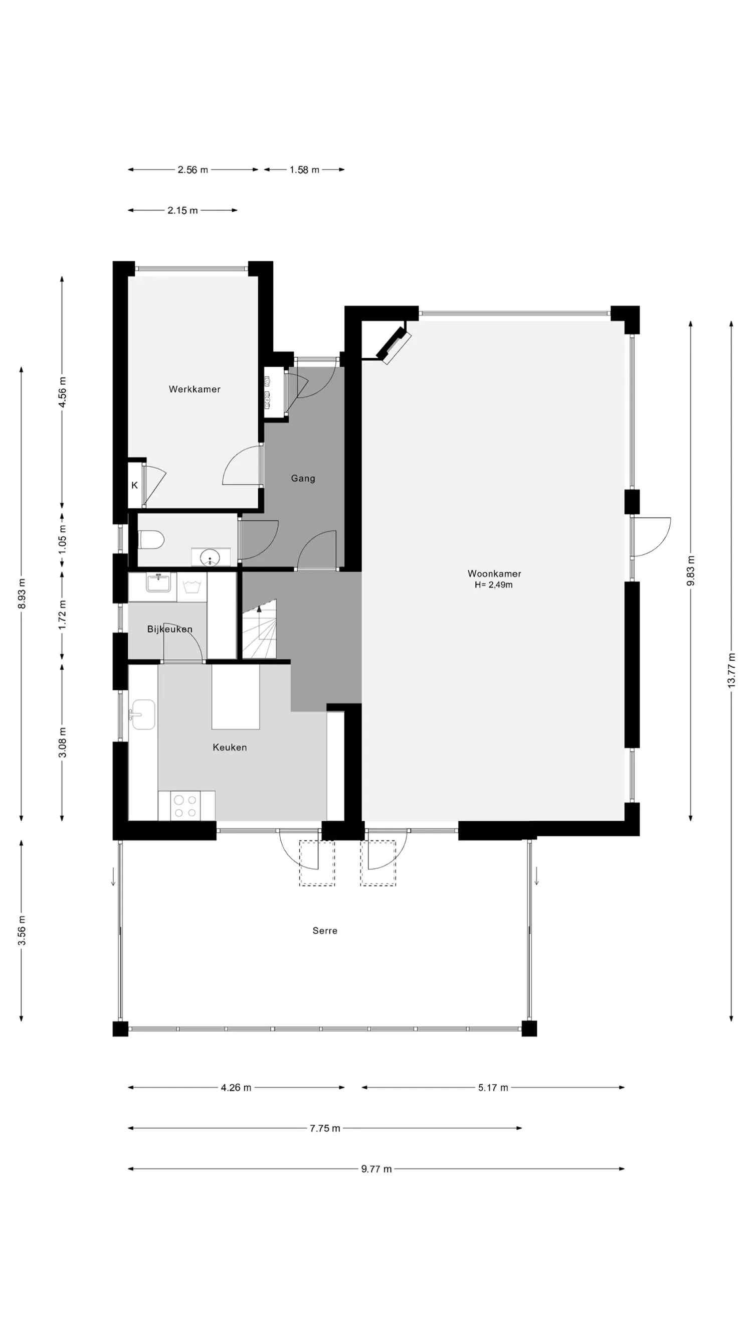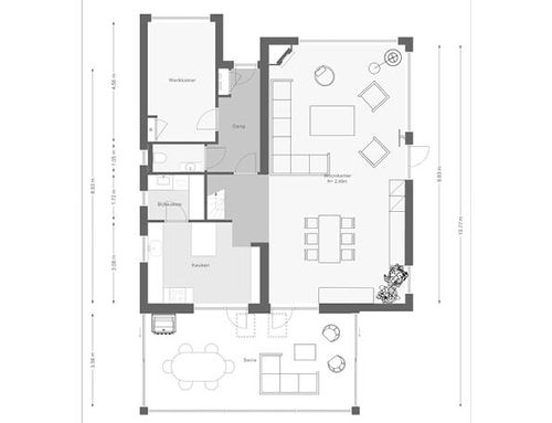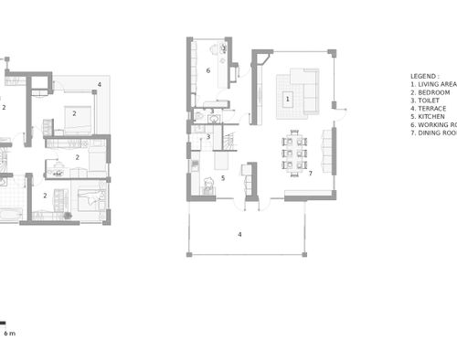 Two alternative scenarios for the dining area (living room vs. conservatory).