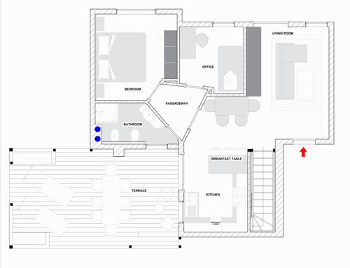 - The terrace is big. It has a removable roof and on one side there is a part that could be open as a way in. I’d like to use the terrace as a living area connected to the kitchen.