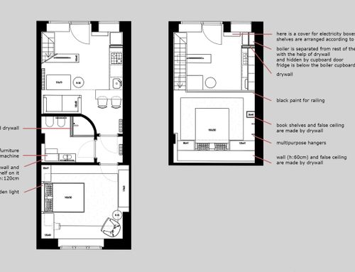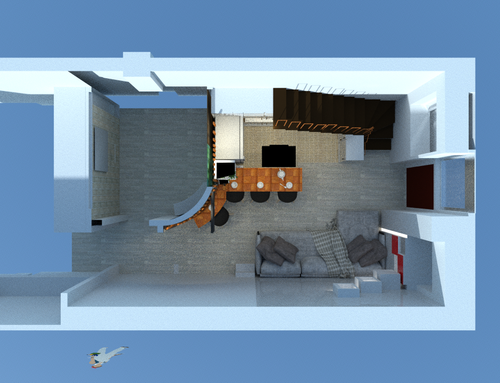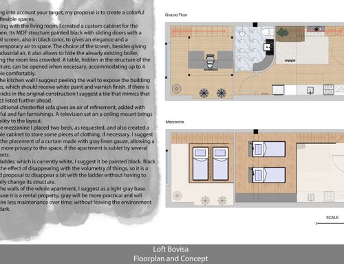 - Sfruttare al meglio lo spazio del soppalco (l’altezza è di 1.50m) per creare una zona notte.